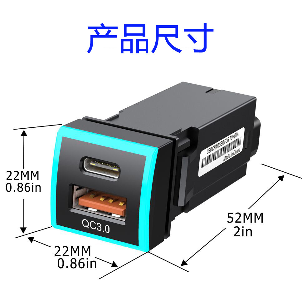 Применимо 19-22 Corollara La Ling Shuangqing USB CAR Мобильный телефон мобильный телефон Модификация зарядного устройства QC3.0 Быстрая зарядка