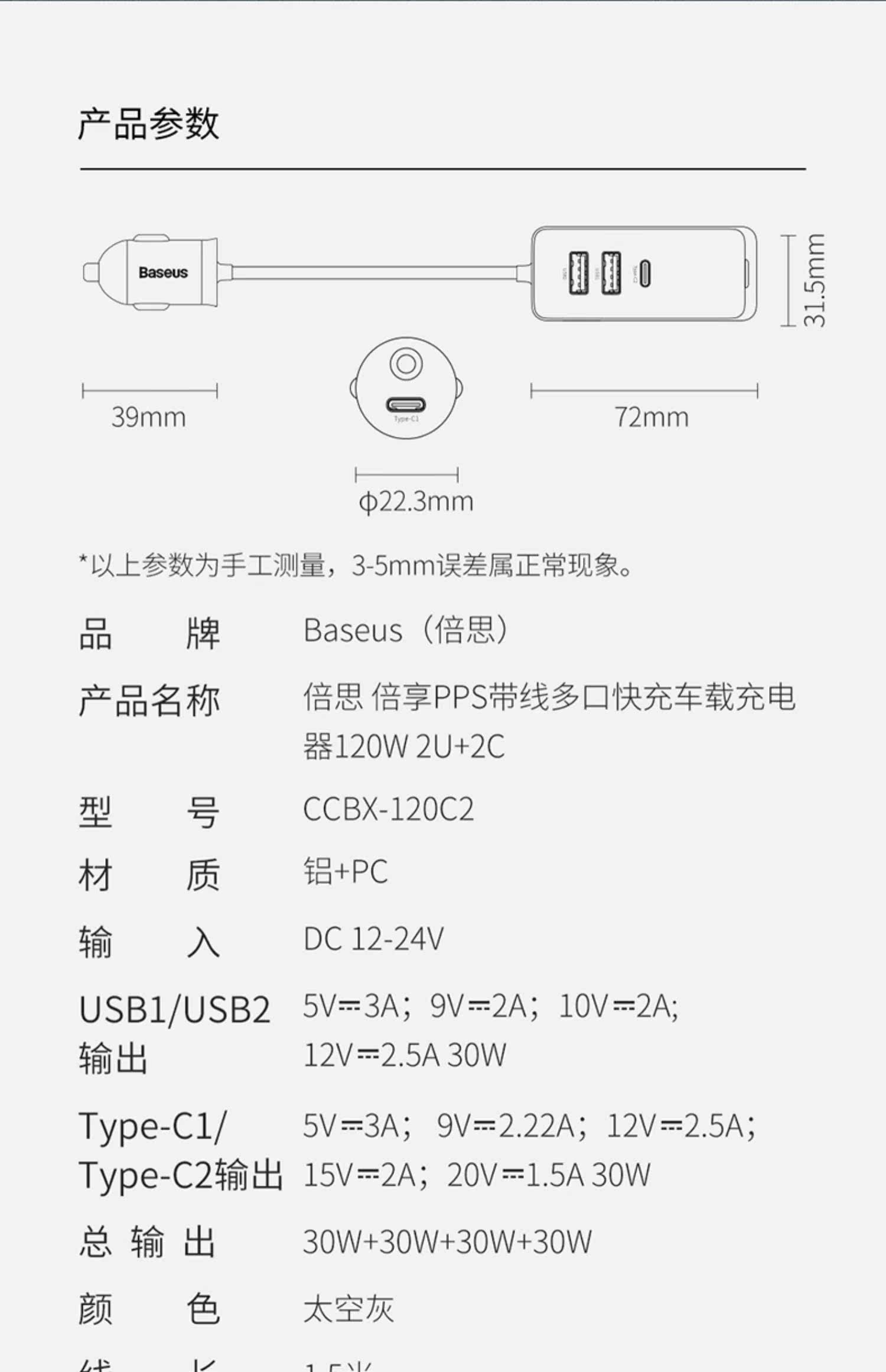 Автомобильное зарядное устройство Baseus, быстрая зарядка от одного до трех, двух PD, супер-переходная вилка прикуривателя, многофункциональная USB120W