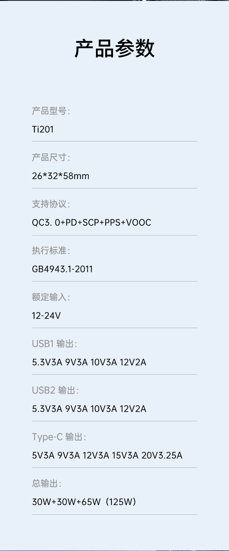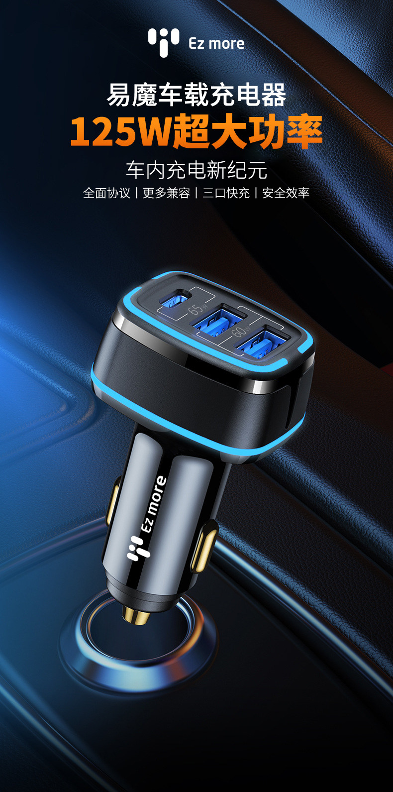 - 125W Полное соглашение поддержка-три выхода быстро зарядки черные