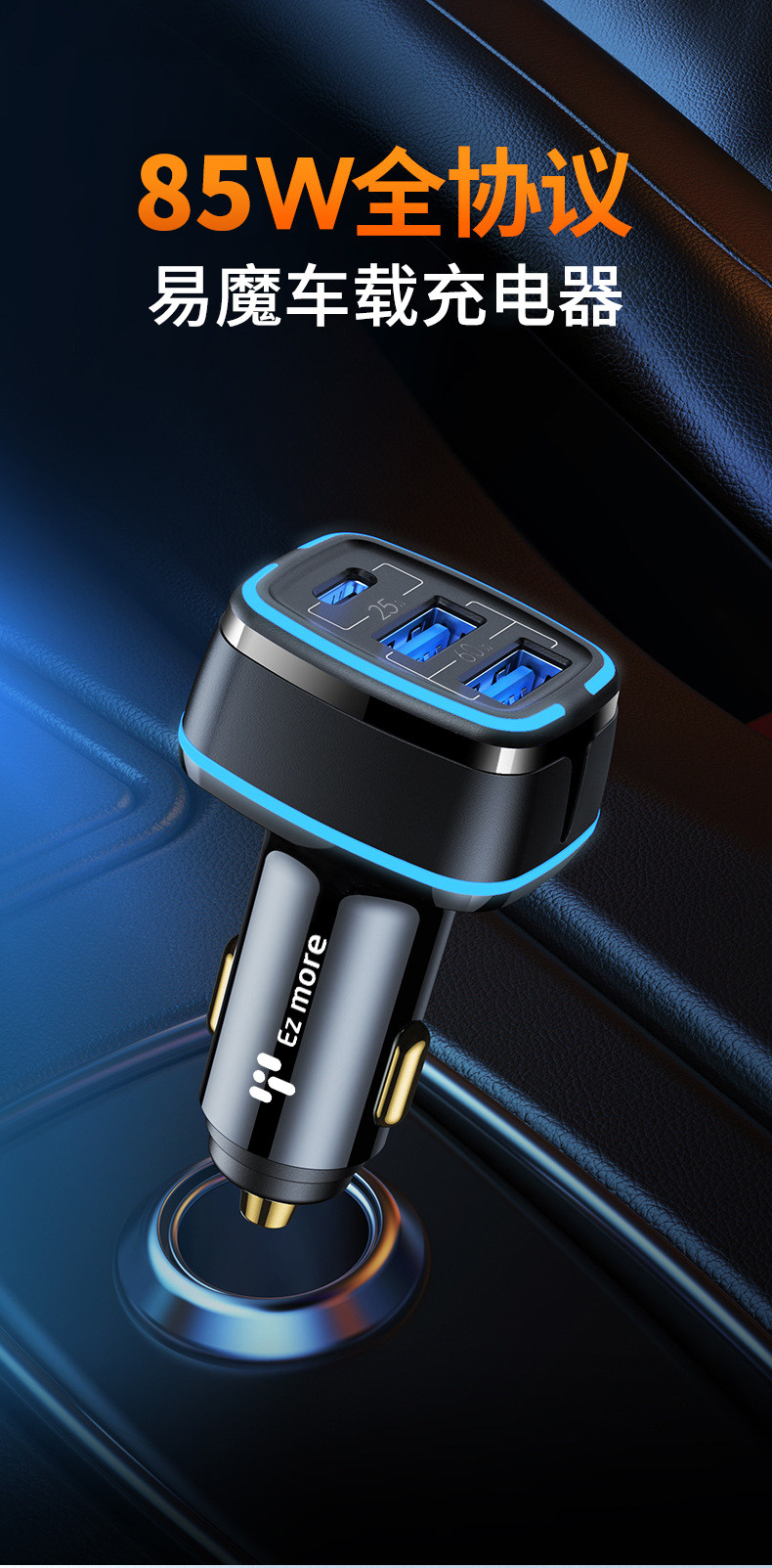 - 85W Полное соглашение поддержка-три выхода быстро зарядка черная