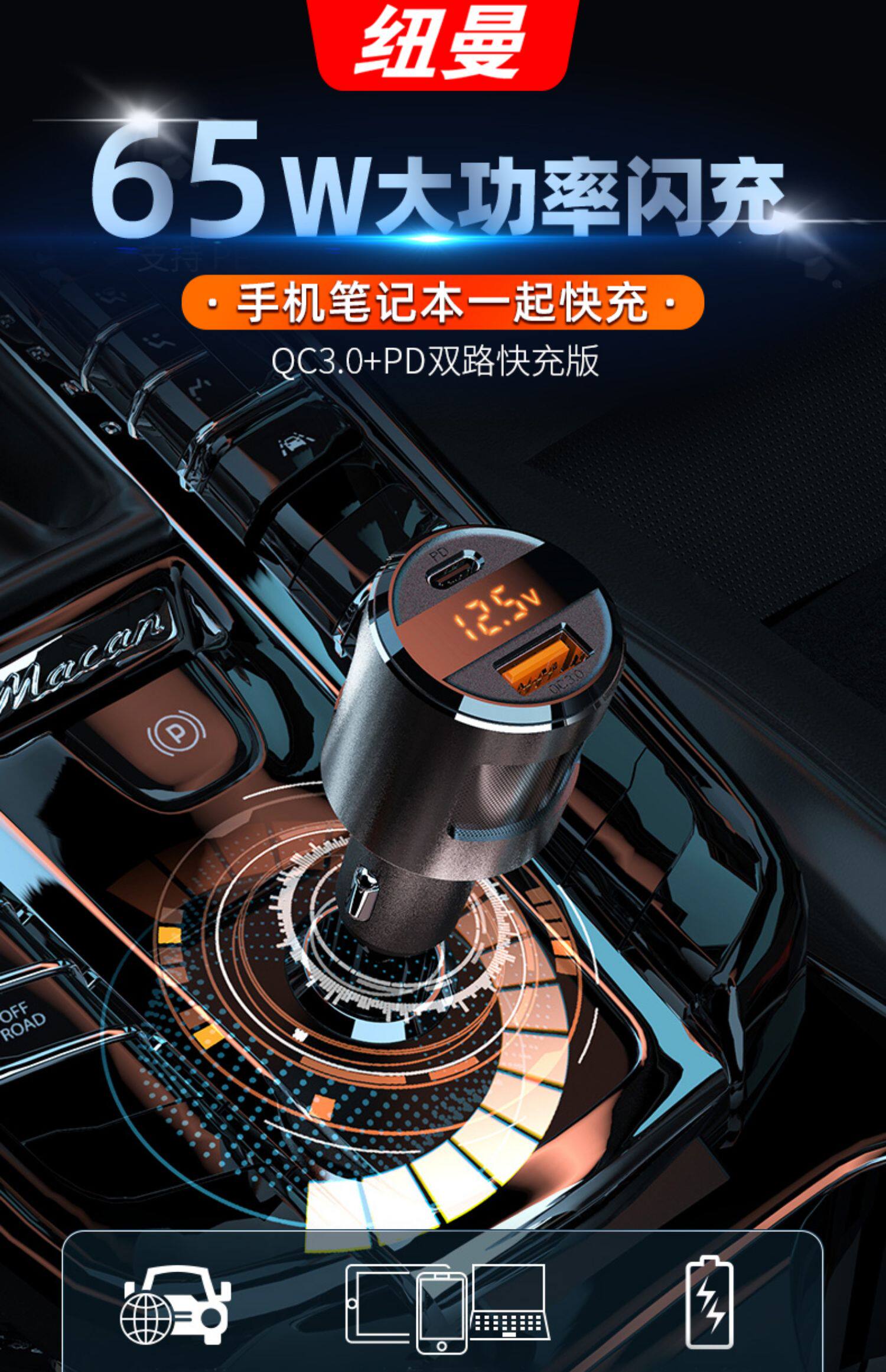 纽曼 Зарядное устройство, зажигалка, ноутбук, 65W, высокая мощность