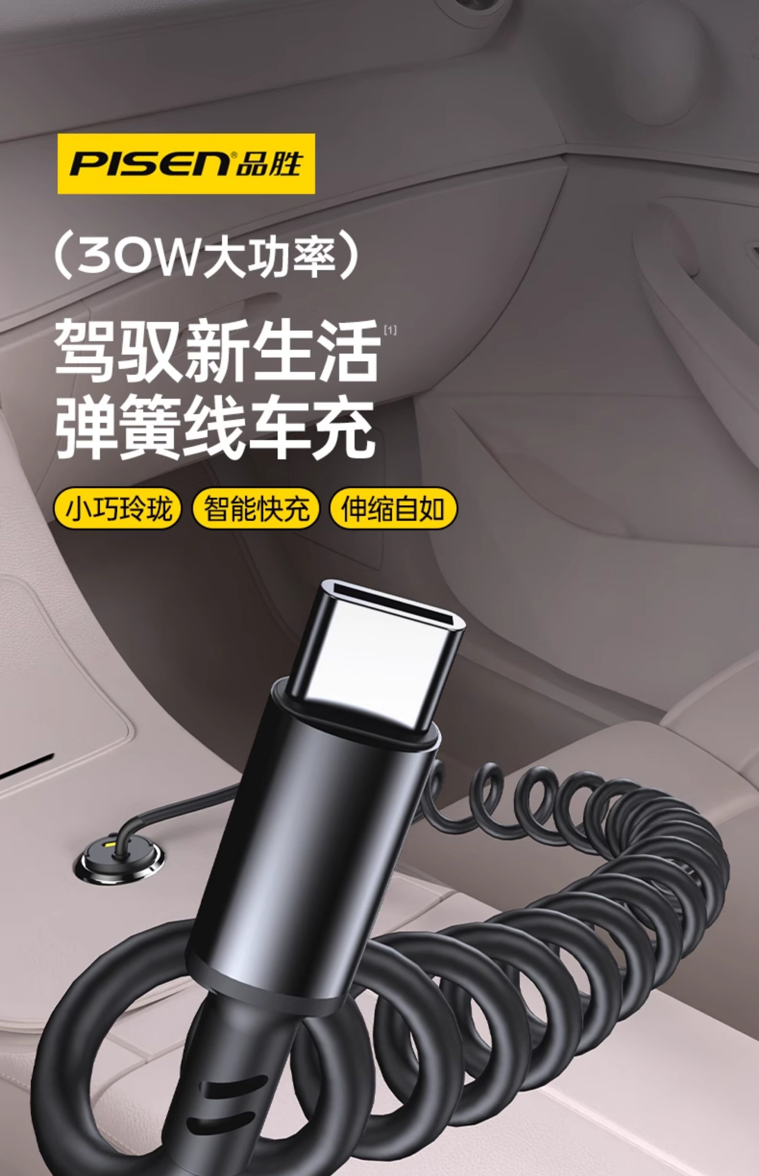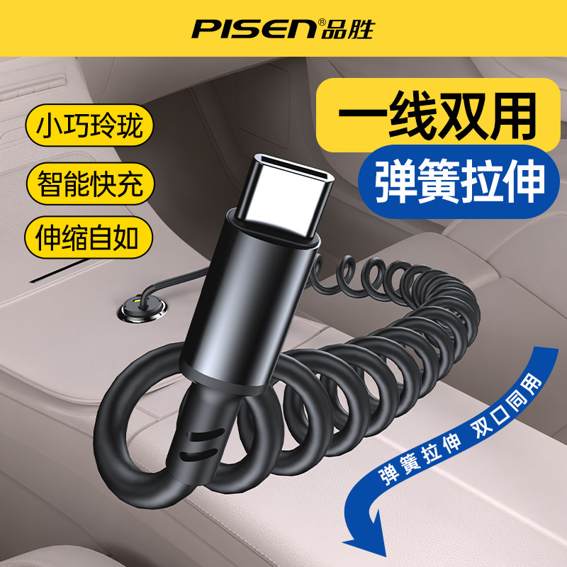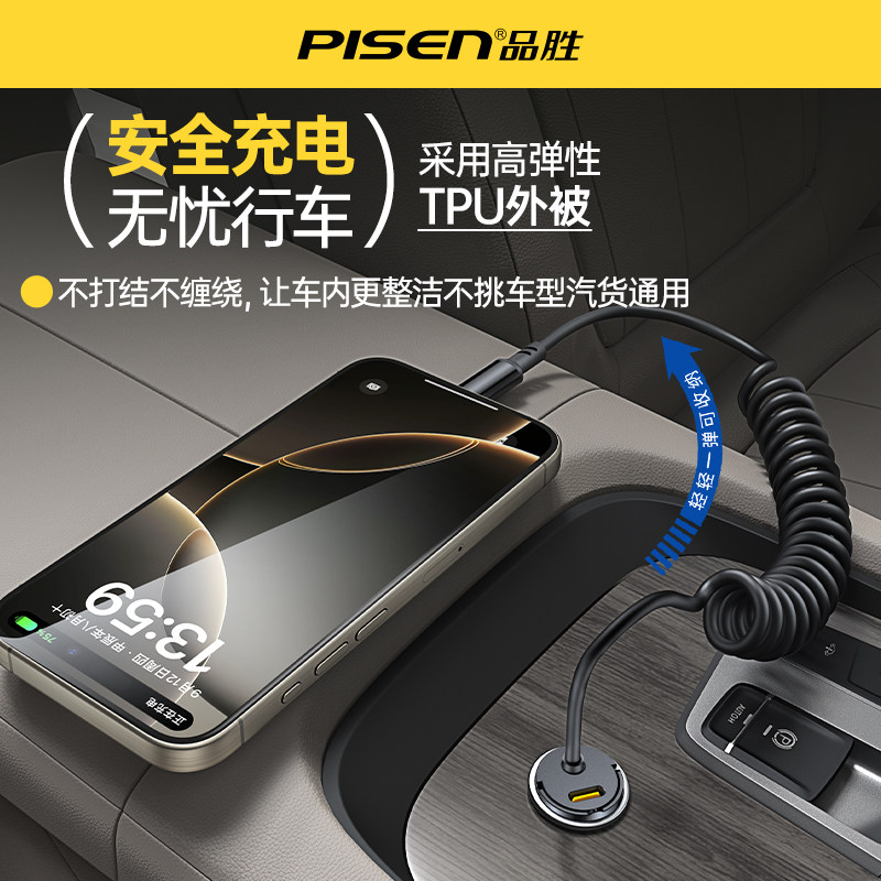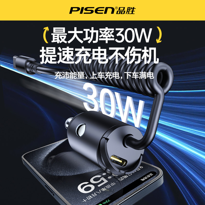 Автомобильное зарядное устройство Pinsheng с вытяжным кольцом поставляется с пружинным кабелем PD30W для быстрой зарядки автомобильного прикуривателя, автомобильное зарядное устройство