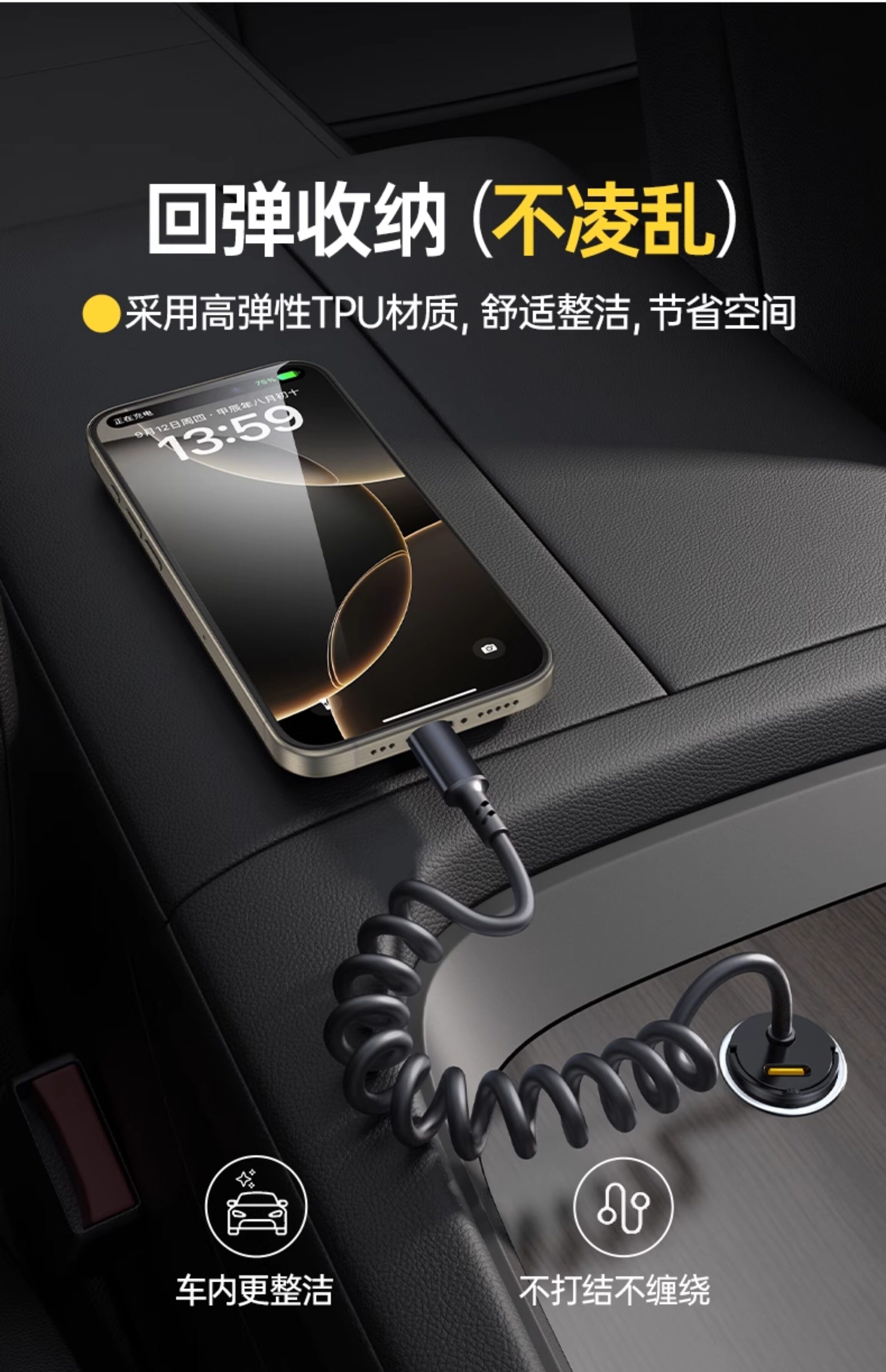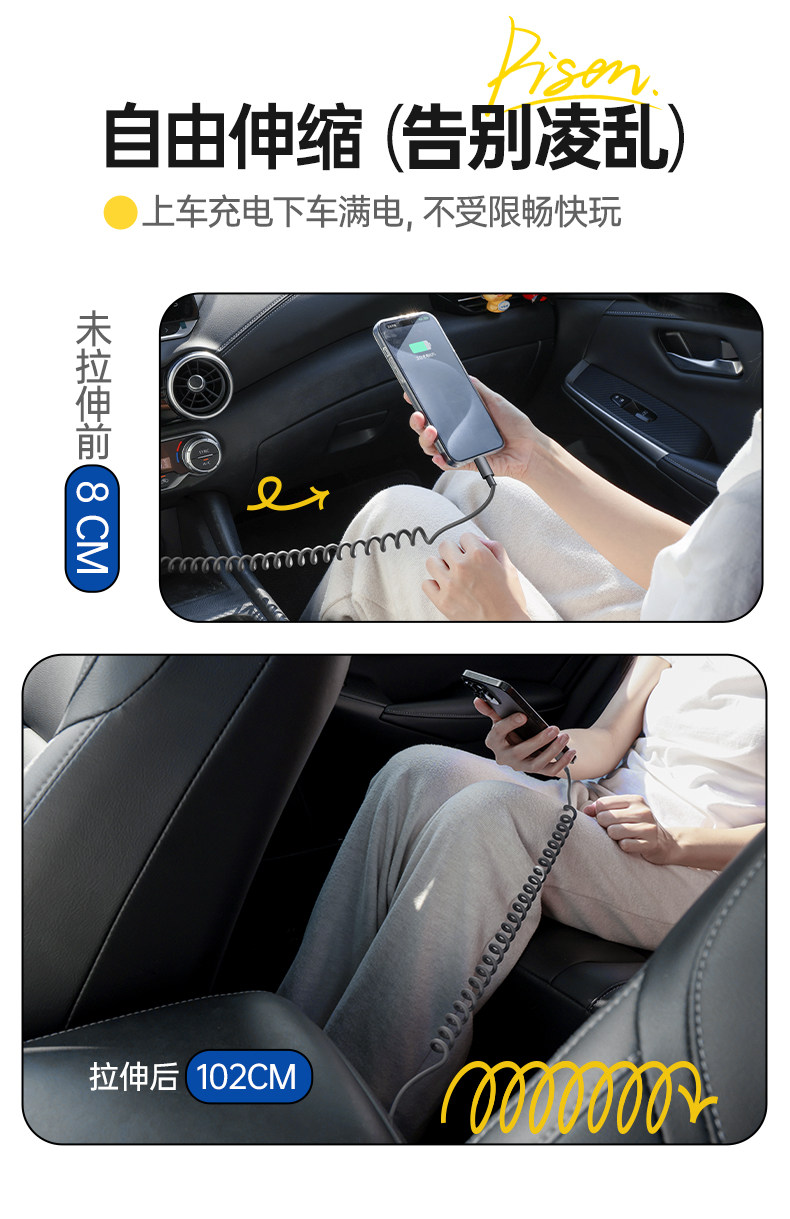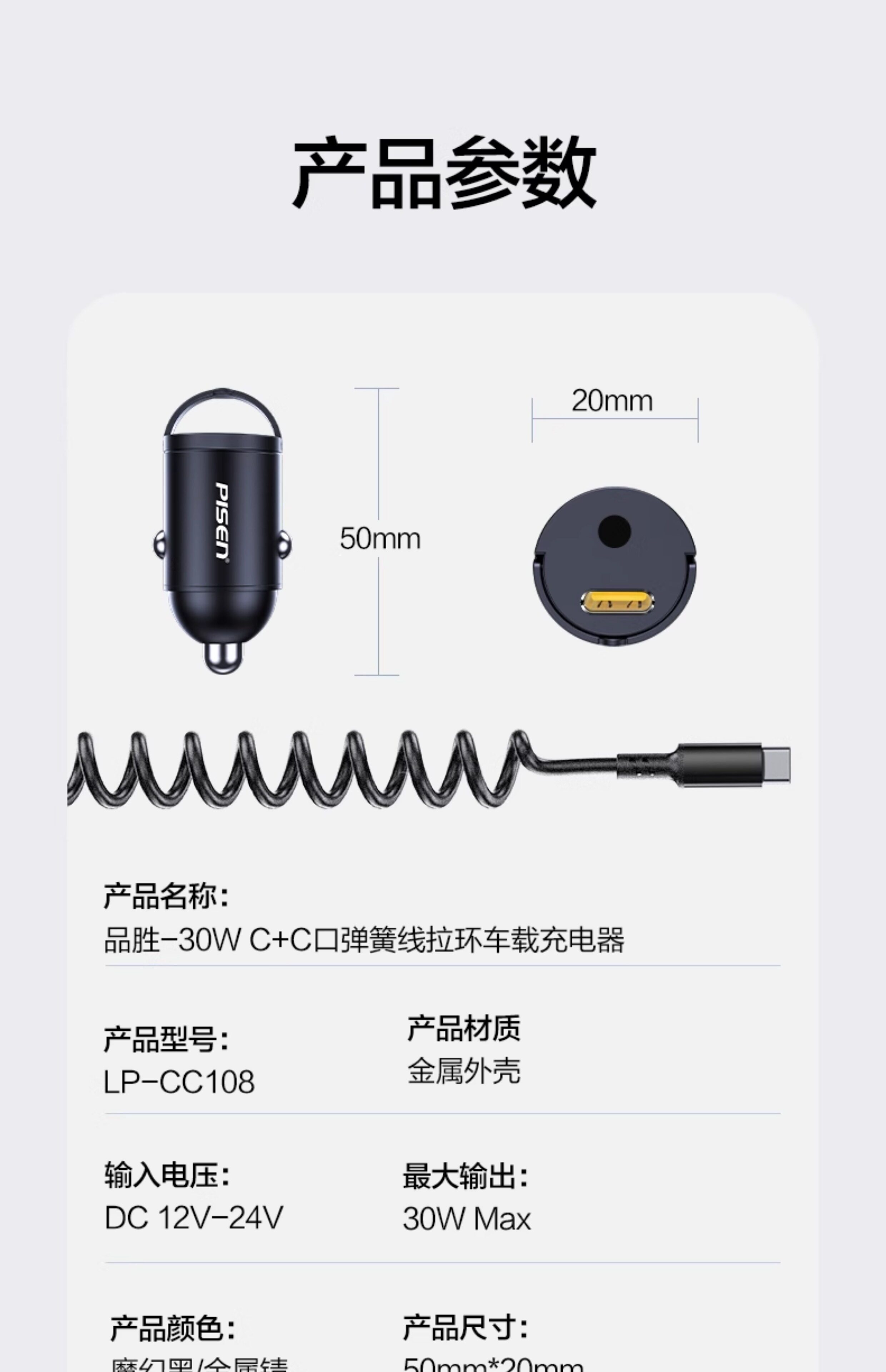 Автомобильное зарядное устройство Pinsheng с вытяжным кольцом поставляется с пружинным кабелем PD30W для быстрой зарядки автомобильного прикуривателя, автомобильное зарядное устройство