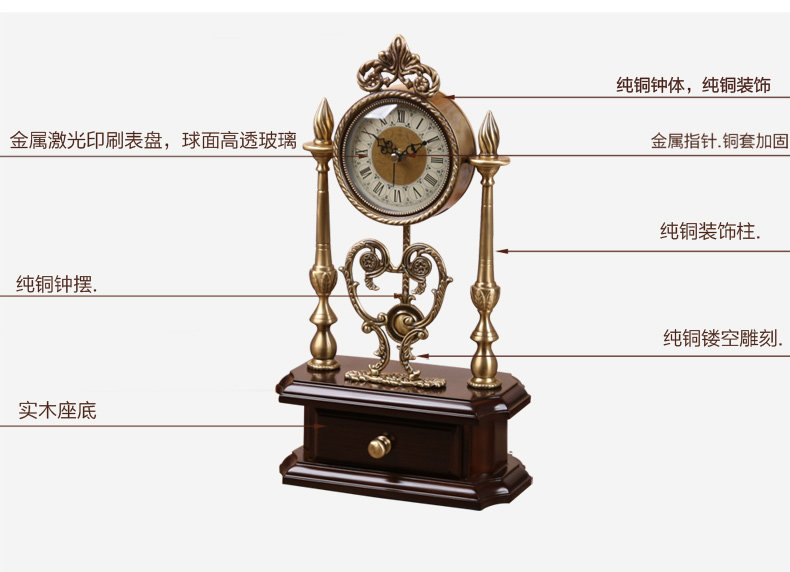 TQJ Европейские часы чистые медные часы творческие творческие часы благоприятные медленные пакеты