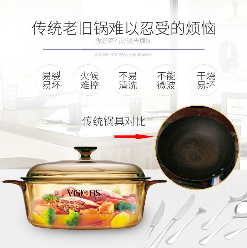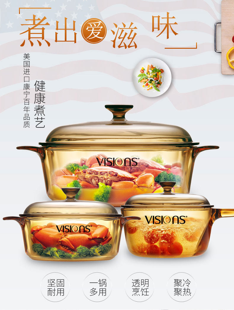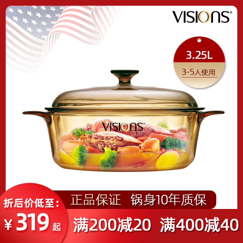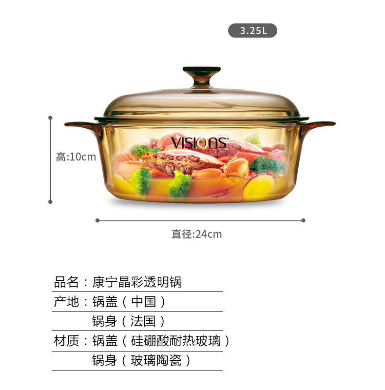 Импортированные американские визиции Corrying Crystal Прозрачный горшок с горшка горшка, тушеной горшок против 3,25 л.