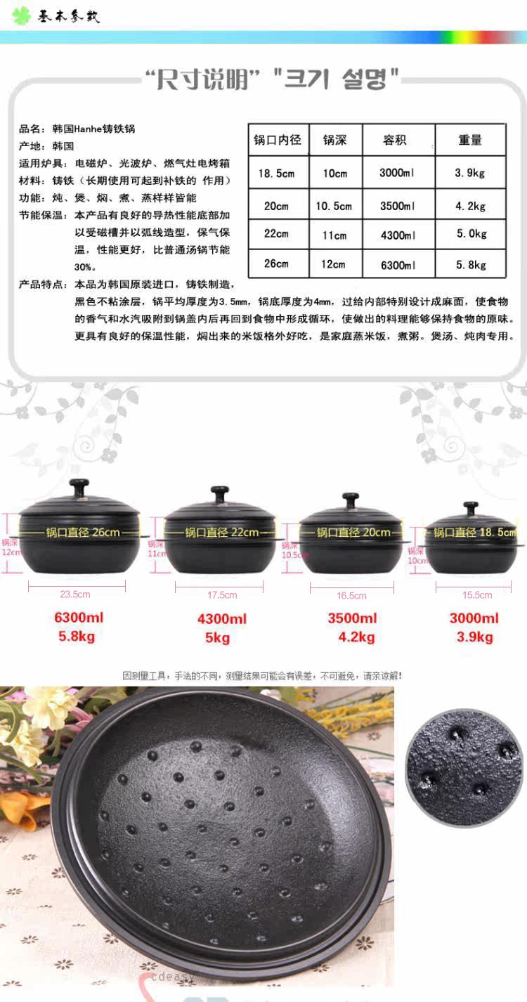 Характеристики продукта: этот продукт импортируется из Южной Кореи, производство чугуна,Средняя толщина горшка