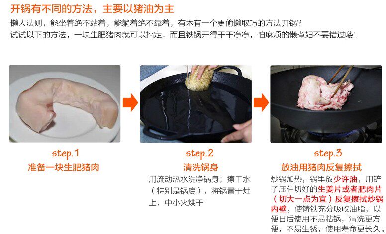 - Чисто-свиноводная железа материал, поверхность обрабатывается расширенным процессом шлифования преобразования частот, сильным сопротивлением ржавчине, нелегко прилипать к нижней части кастрюли, эффективно снижая масляную мешку, энергосберегающую и экономичную, удобную и простую в чистке
