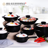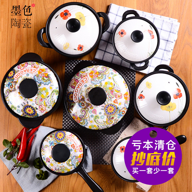 Чернильный цвет пояс, покрытый корейской сковородом, жареной сковородой, плитой, керамической кастрюлем тушеной кастрюль с песчаной кастрюль.