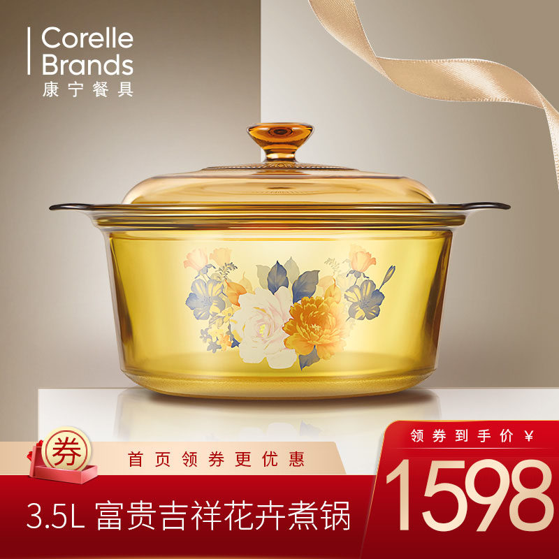 康宁 Doster Soup Pot без липкого кастрюлю -наполненное стеклянное горшок, чтобы приготовить 3,5 литра богатства благоприятные цветы кипящий горшок