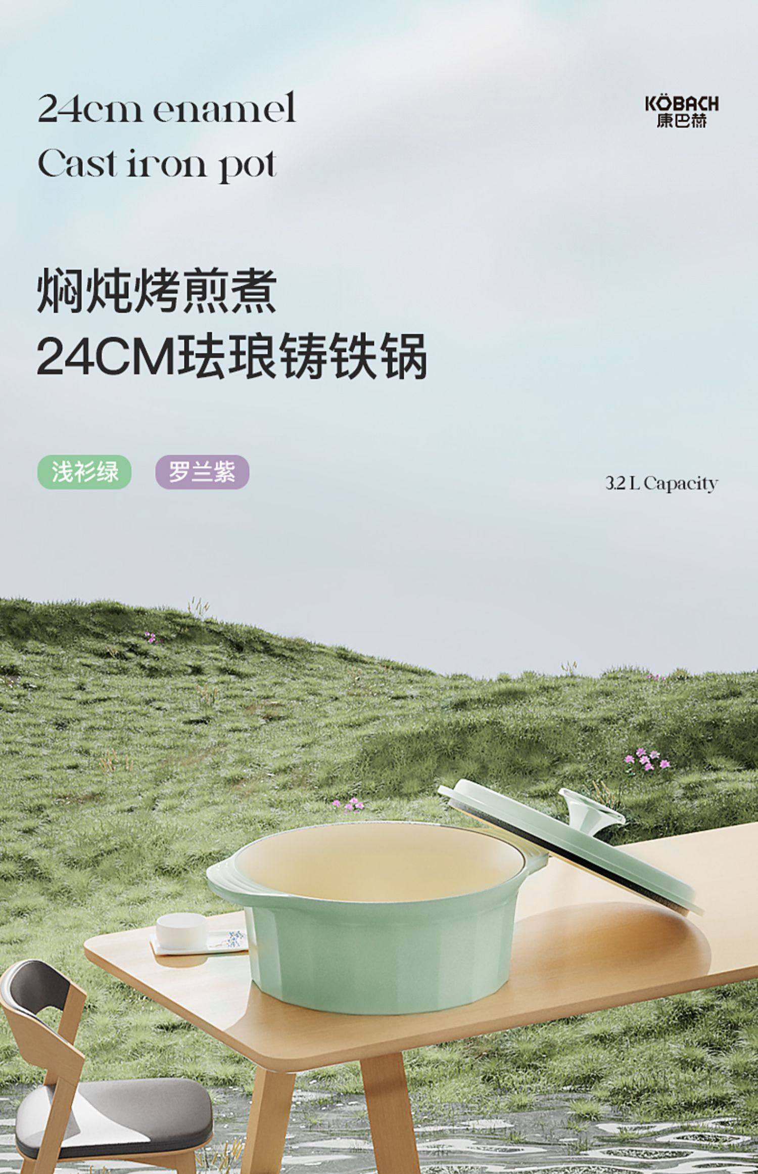 Кангбах чугунная эмалевая кастрюль без покрытия.