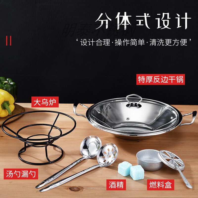 Утолщенное вино из нержавеющей стали тонкая печь Небольшой горячий горшок сухой горшок для котлета плоское горшок с твердым вином.
