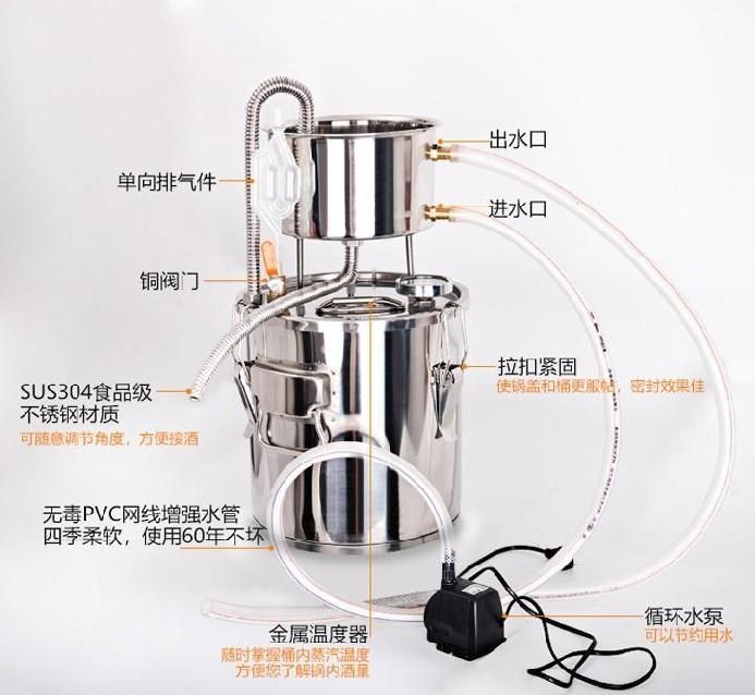 Маленькая домохозяйство -один разумный ствол из нержавеющей стали.Коммерческие дистилляторы делают инструменты для приготовления алкоголя