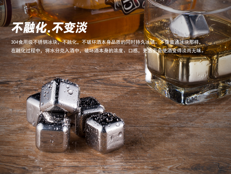 У нас есть эта 304 нержавеющая стальГаджетКогда мы охлаждаем его в течение часа, поместим в напитки или другие жидкости, это заменит роль кубиков льда, продолжительность охлажденияКубики льдаДольше, просто маленький!По сравнению с традиционными кубиками льда кубики льда из нержавеющей стали не будут влиять на напитки из -за плавлениязапахИ может быть использован повторно.