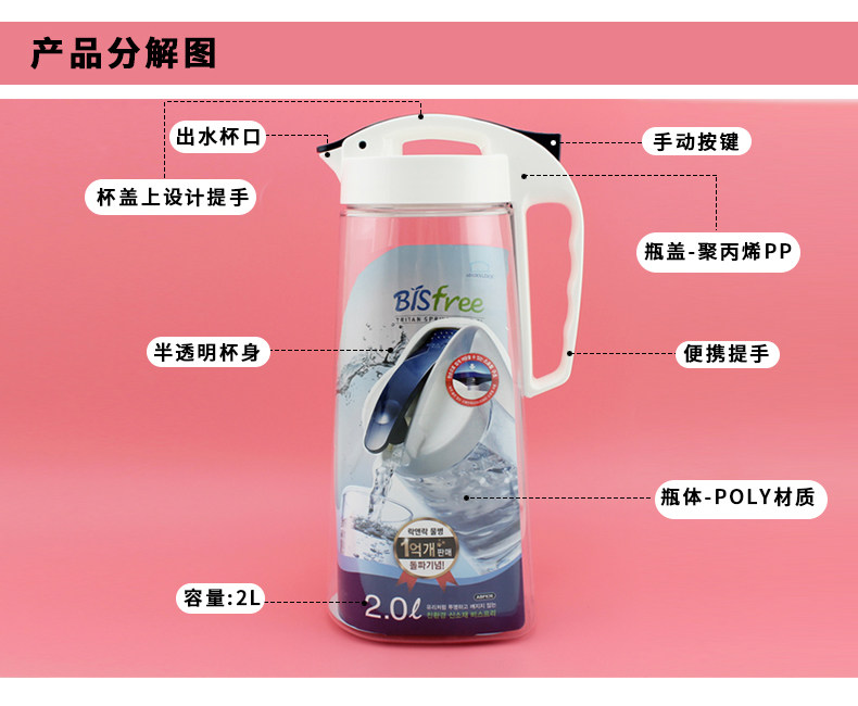 Пластиковая бутылка для холодной воды с замком и замком. Бутылка большой емкости для холодильника. Чайник для сока. Крутая чашка для кипяченой воды. Бытовая высокая термостойкость. 2 л.