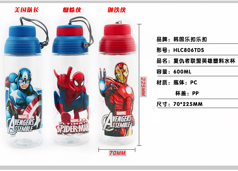 Подлинная музыкальная пряжка пластиковая чашка Marvel Cartoon Heroes Cup Sports Tea Cup HLC806 807