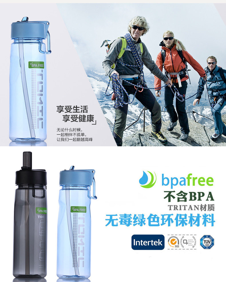 Портативная спортивная бутылка для воды, герметический вместительный и большой стакан со стаканом, пластиковая чайная чашка, чайник для спортзала