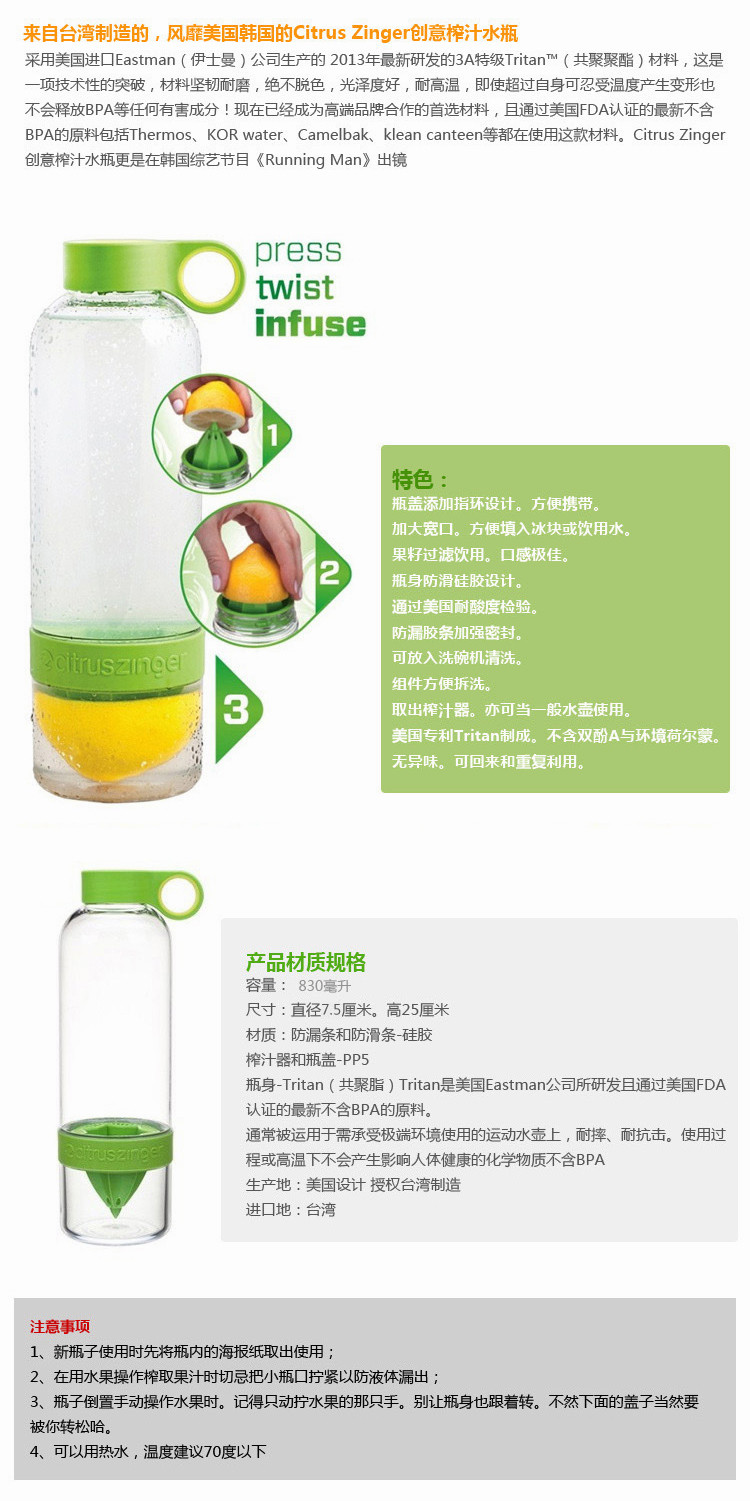 Анти -Counterfeit версия пятно Citrus Zinger Lemon Cup Fruit Squeezing Cup Vibrant Bottle 830ML