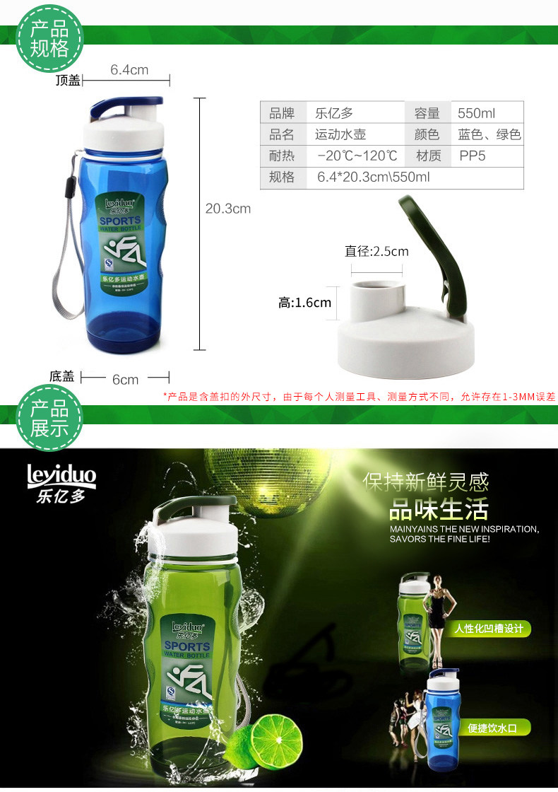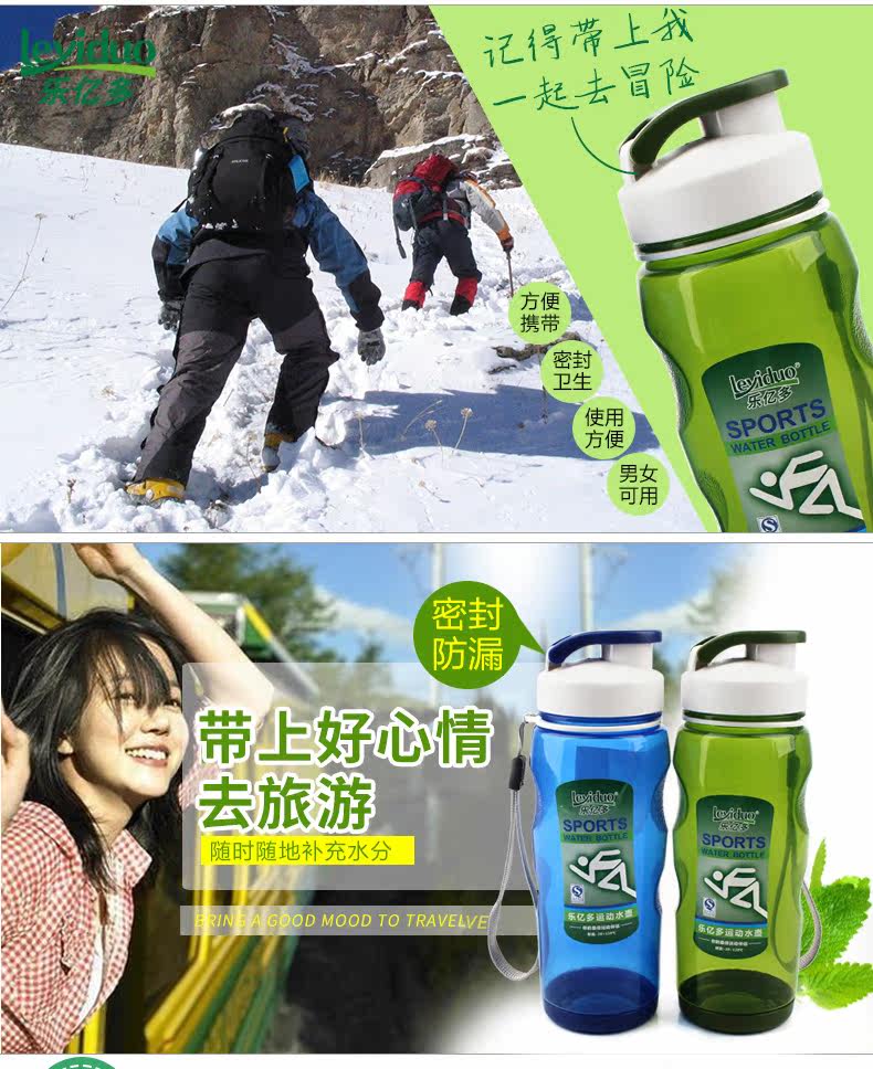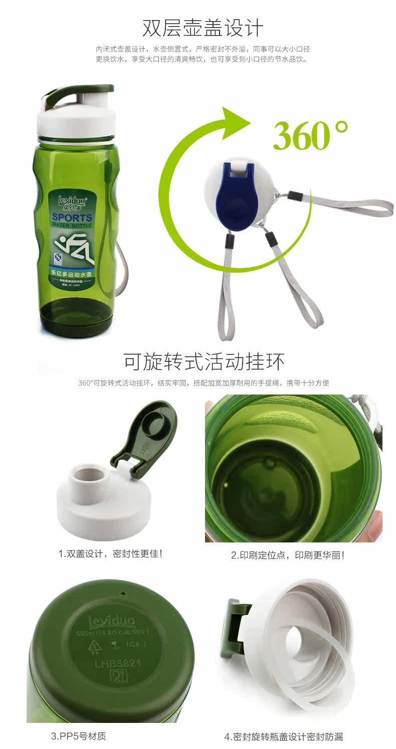乐亿多 Пластиковая портативная модная спортивная бутылка с уплотнителем, 550 мл