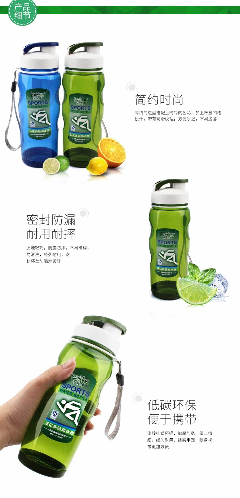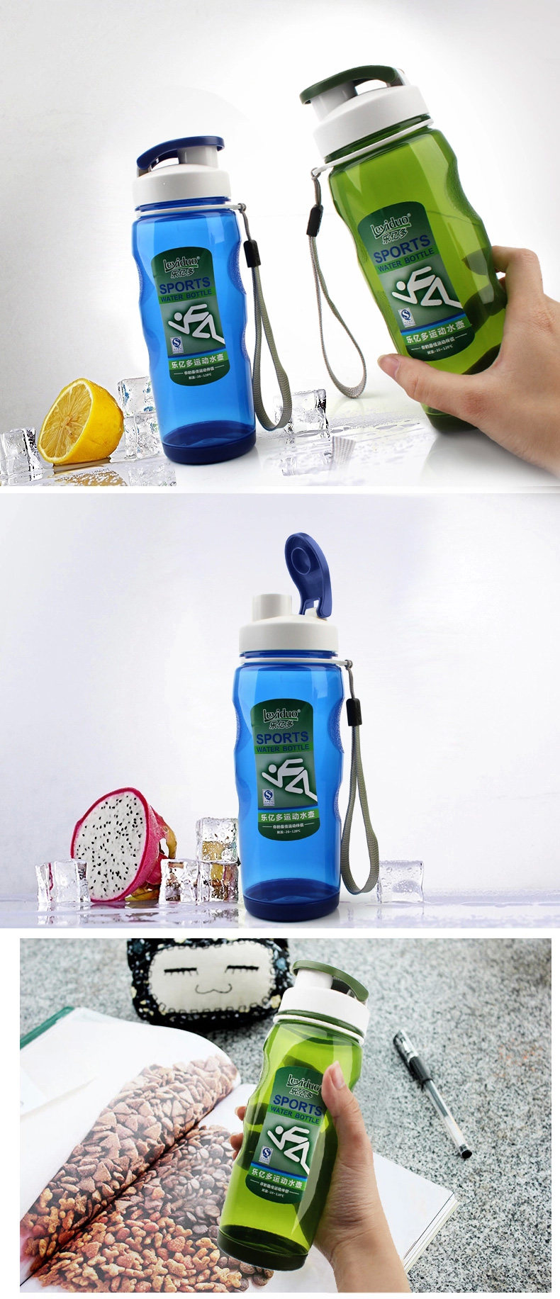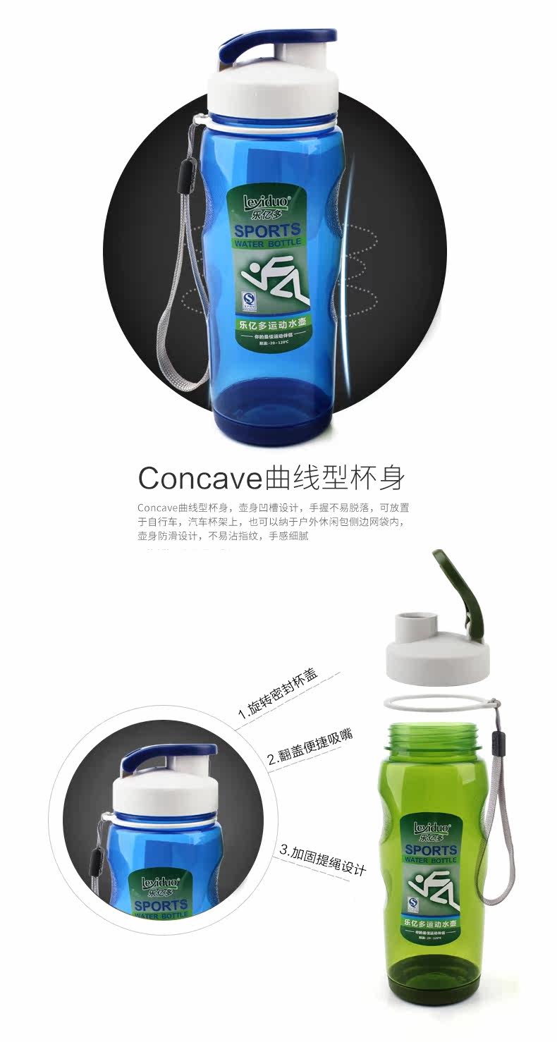 乐亿多 Пластиковая портативная модная спортивная бутылка с уплотнителем, 550 мл