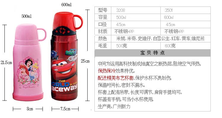 Дисней, вместительный и большой термос из нержавеющей стали для путешествий, герметический стакан с уплотнителем, объем 600, 600 мл