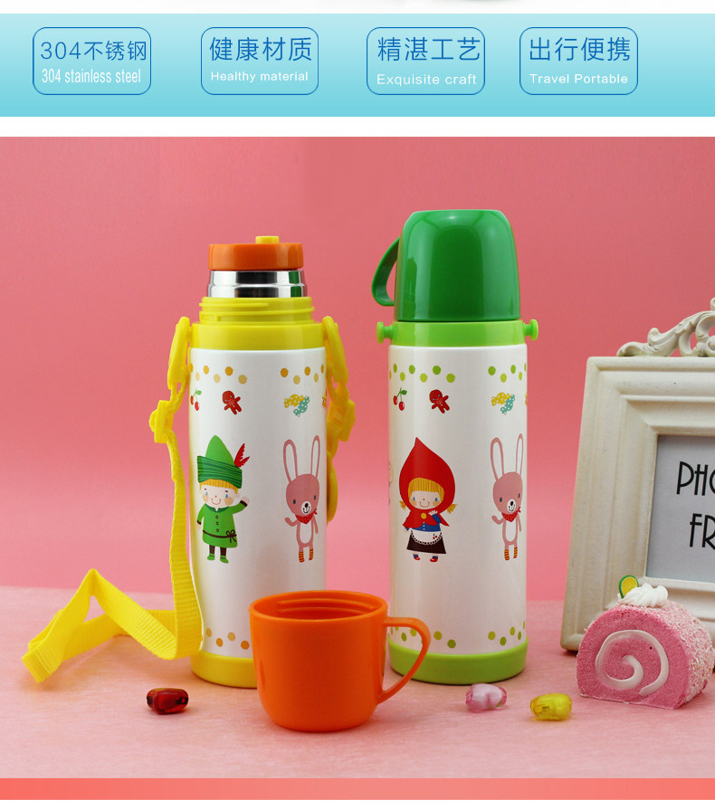 Детский термос со стаканом для школьников, мультяшный стакан для детского сада с гравюрой