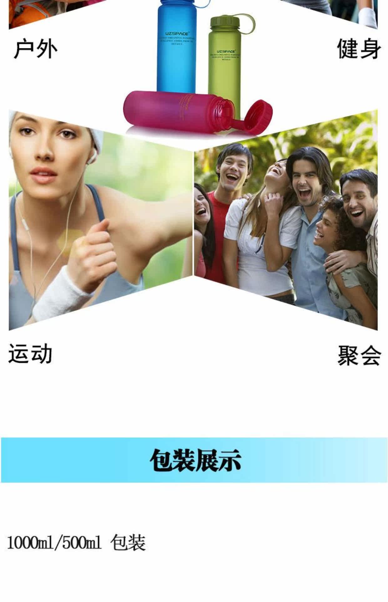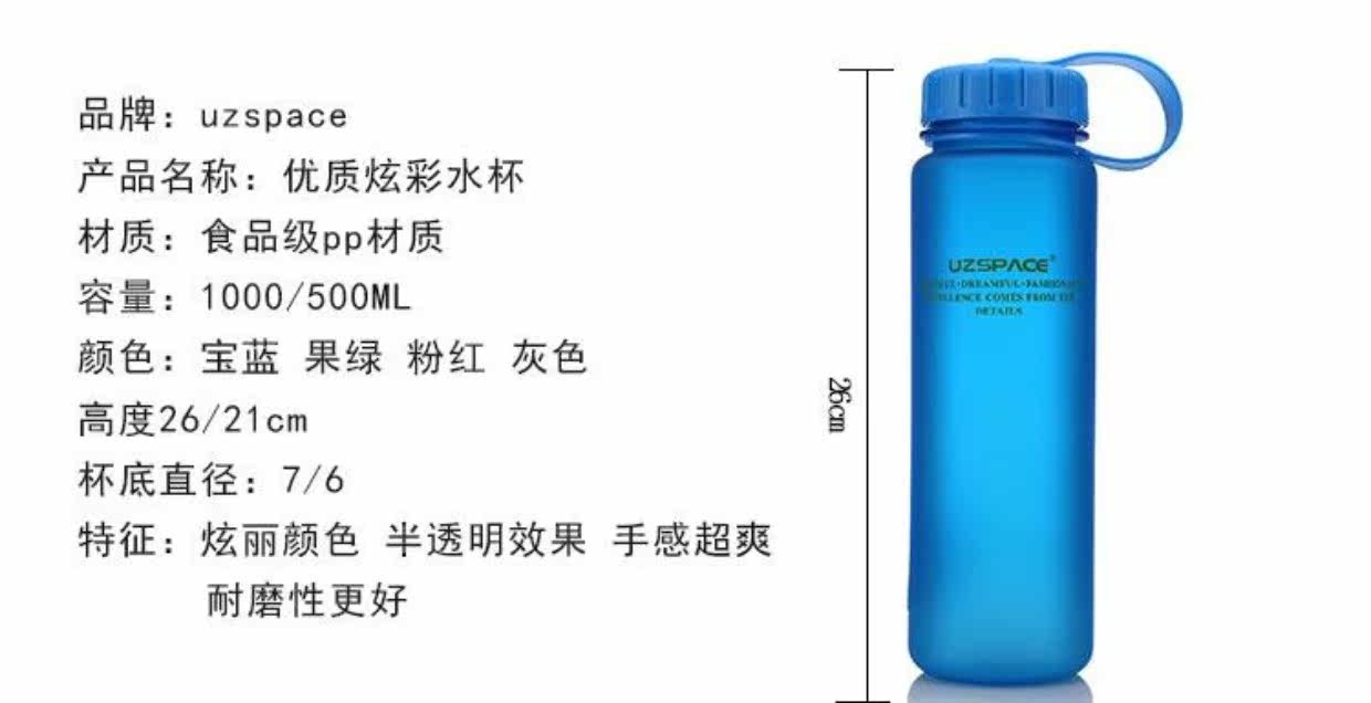 Вместительная и большая креативная портативная пластиковая спортивная бутылка, 1000 мл