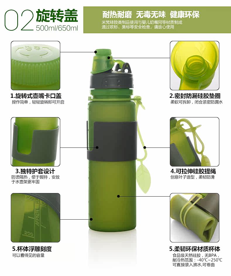 Дорожный вместительный и большой портативный силиконовый чайник для велоспорта, альпинистская спортивная бутылка, защита при падении