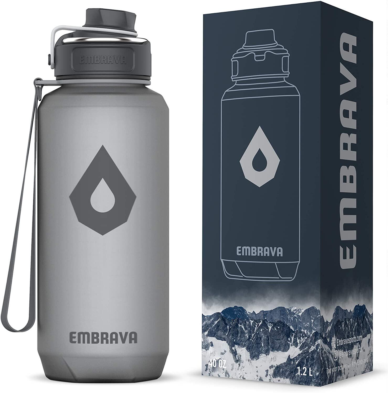 Способ в американской бренде бренда Embrava Sports Water Cup, Frosted Feel, One -Click Oper!У корпуса бутылки есть лозунги бренда: Fortune предпочитает храбрый