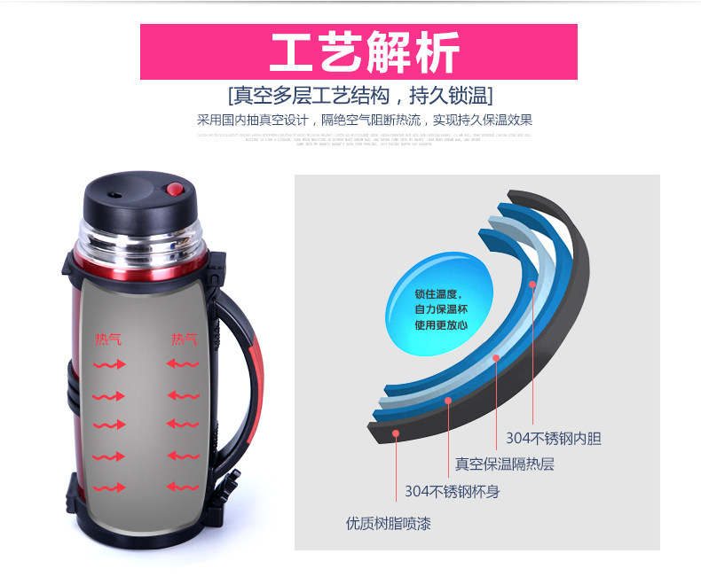 Вакуумный стакан из нержавеющей стали для путешествий, термос, объем 1200, 1200 мл