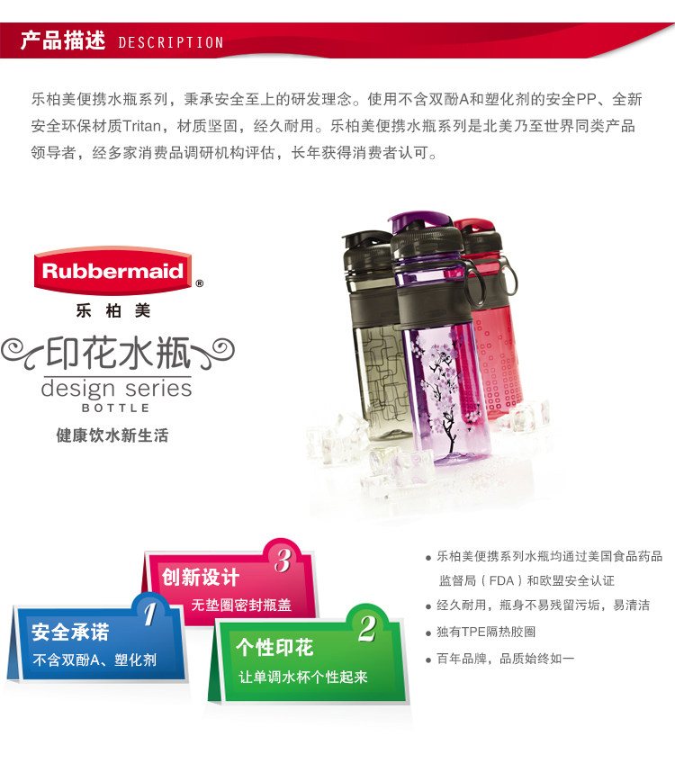 Rubbermaid Rubberma Импортированная водяная чашка Tritan Print Water Pitnes