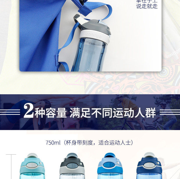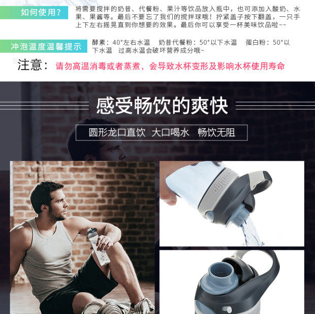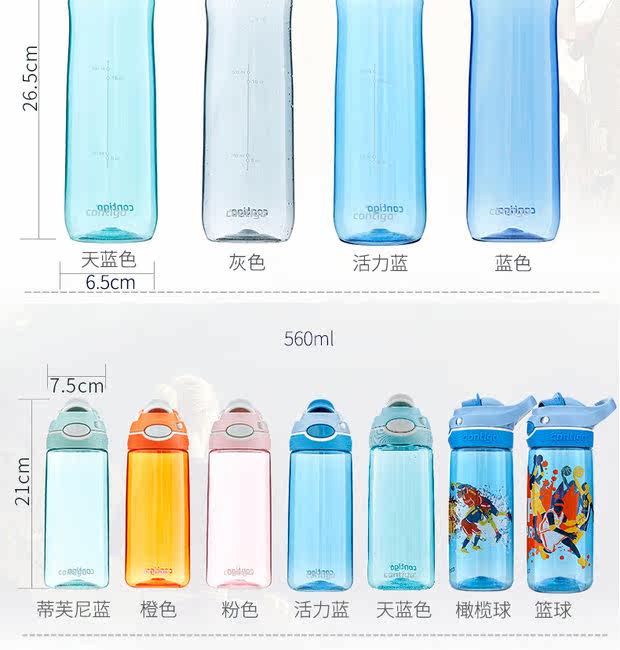 Вместительная и большая качалка для воды со стаканом для спортзала для путешествий, США, 560 мл