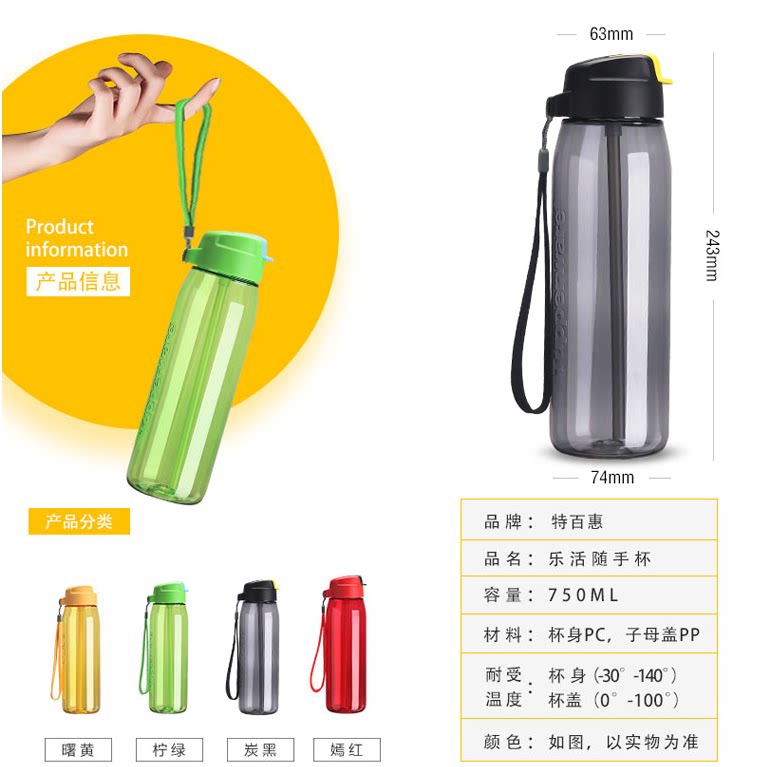 Портативная герметическая трубочка подходит для мужчин и женщин со стаканом, спортивная бутылка, 750 мл