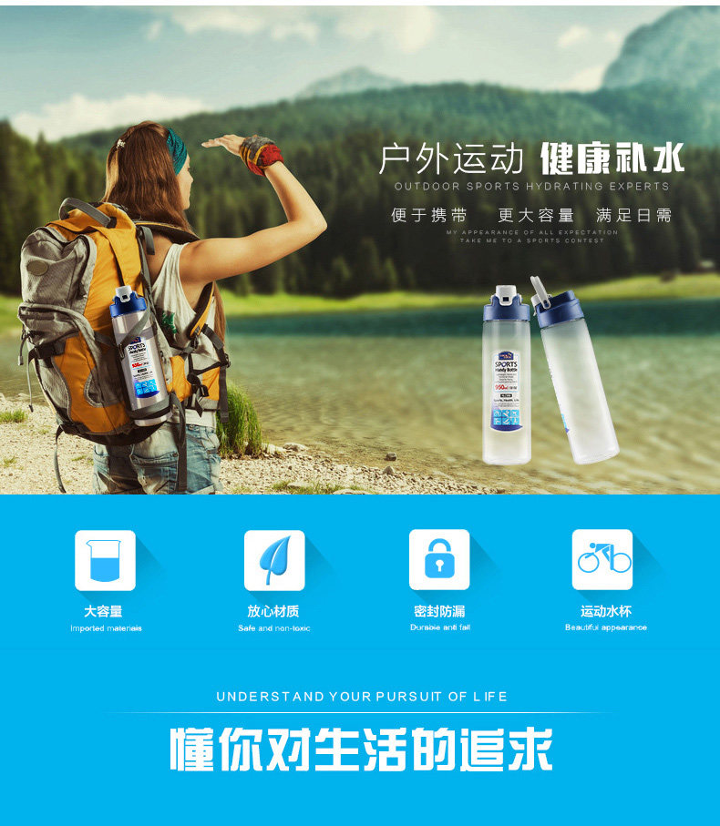 Летняя пластиковая спортивная вместительная и большая чайная чашка, чайник
