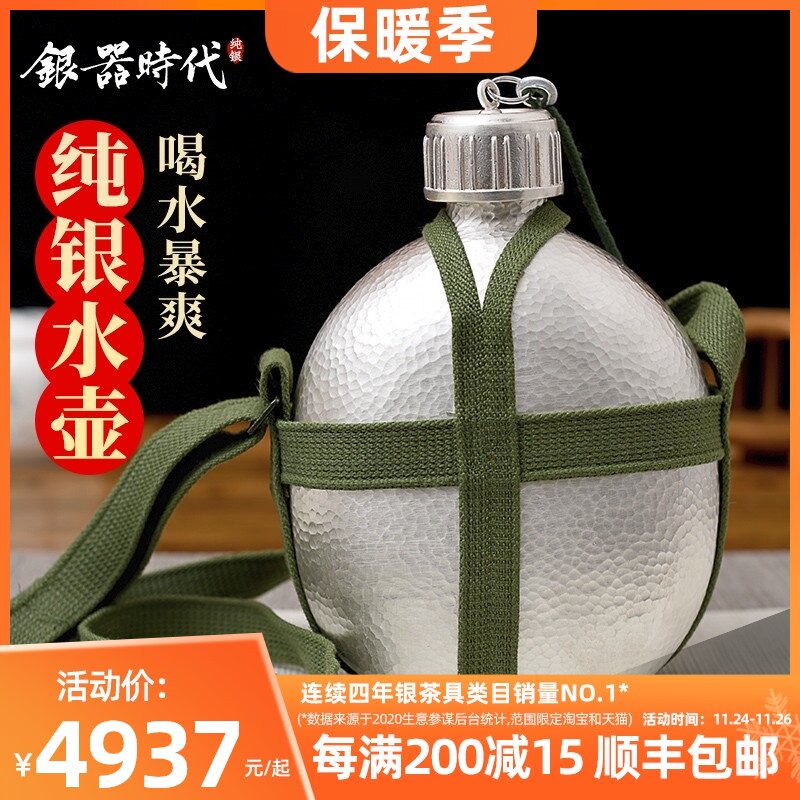 С кованным узором дорожный чайник для путешествий ручной работы, вместительная и большая портативная карманная фляжка, очиститель для серебра, серебро 925 пробы