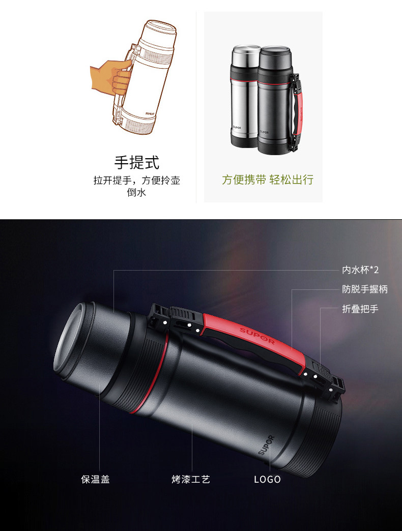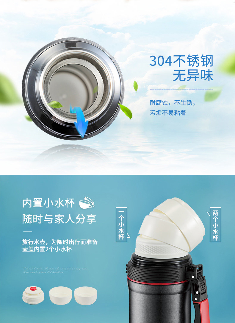 Вместительный и большой термос для путешествий из нержавеющей стали для домашнего использования, объем 304