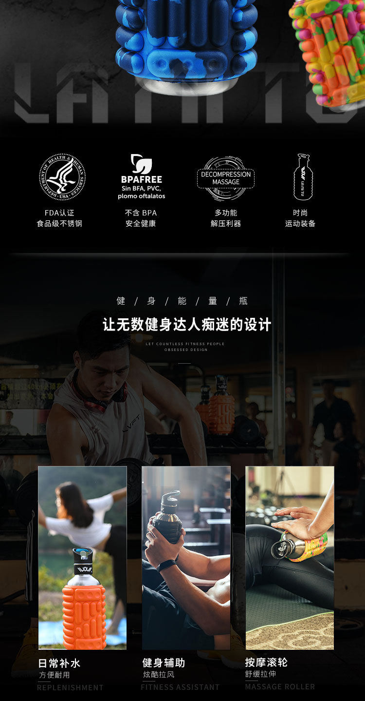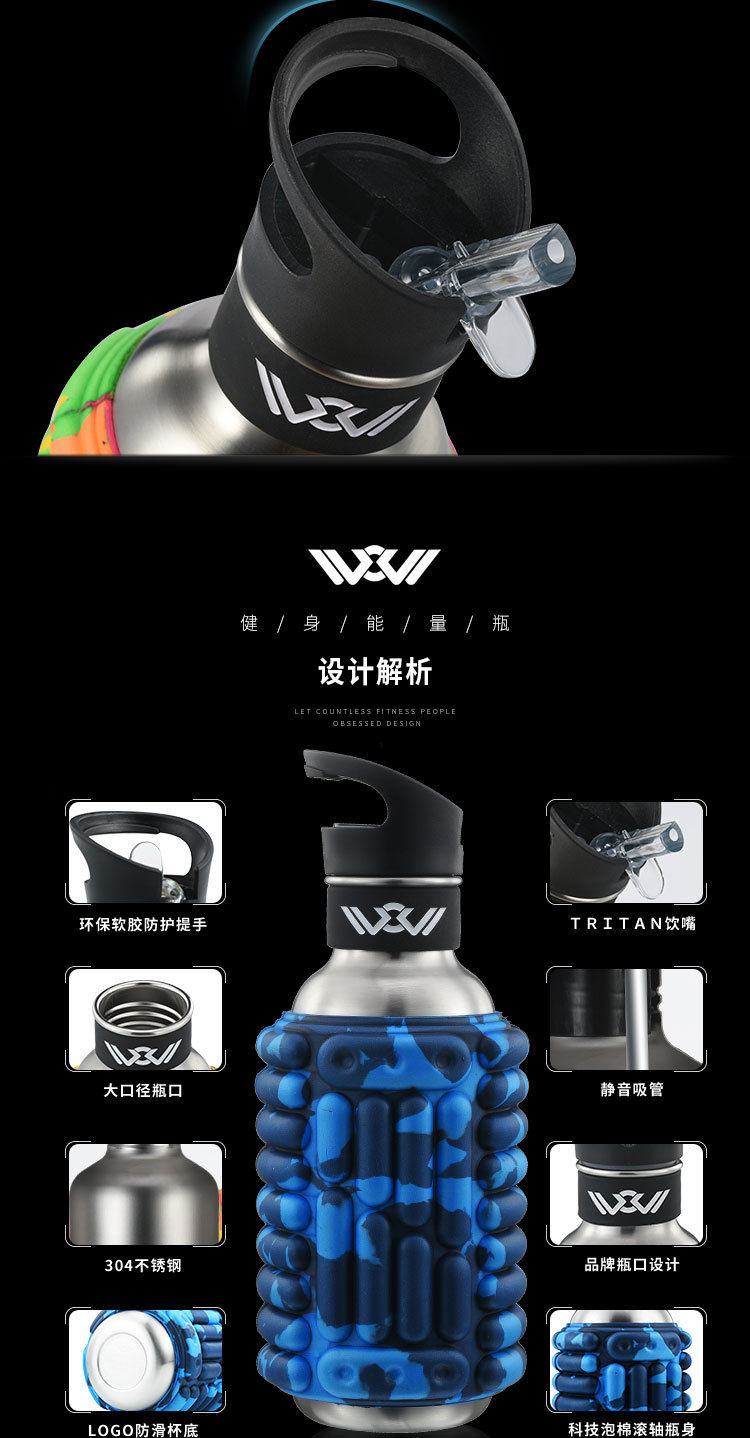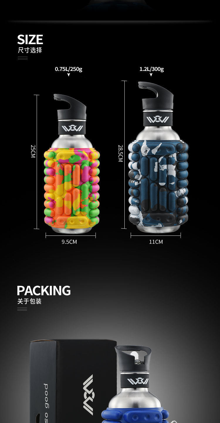 Портативный вместительный и большой стакан, чайная чашка из нержавеющей стали из пены со стаканом, спортивный массажер, чайник, 1200 мл