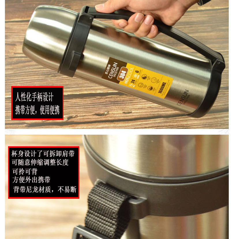 Пионер Yuetu Travel Bo CSJ-1600L Домашние пользователи Внешний автомобиль 304 Изоляция из нержавеющей стали Большая емкость