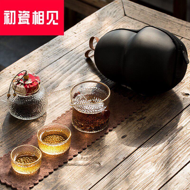 初瓷相见 Стеклянный чайный сервиз для путешествий, дорожный портативный комплект