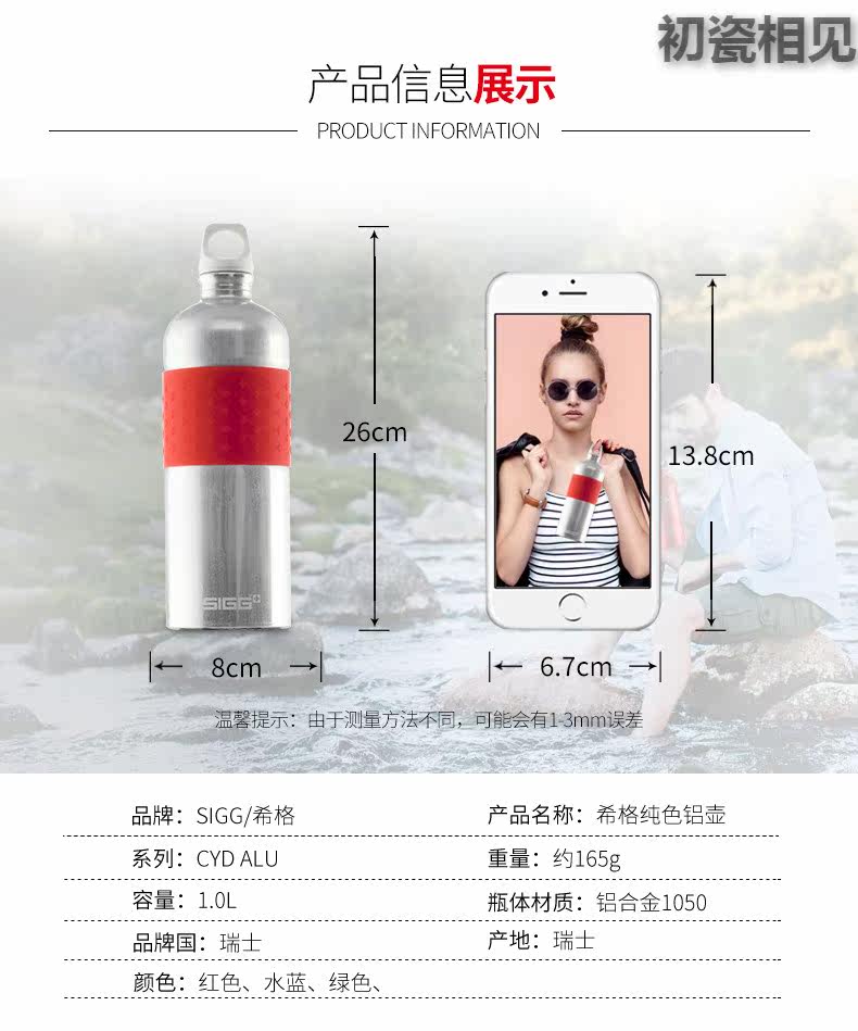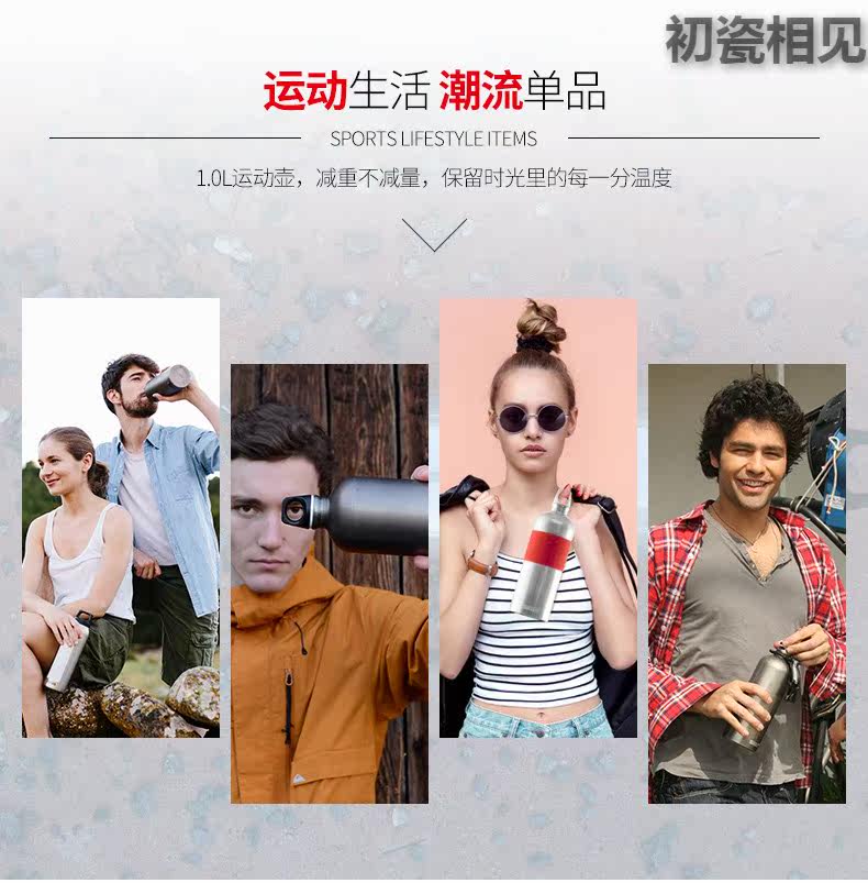 初瓷相见 Портативная вместительная и большая спортивная бутылка, дорожный чайник для спортзала, 1000 мл