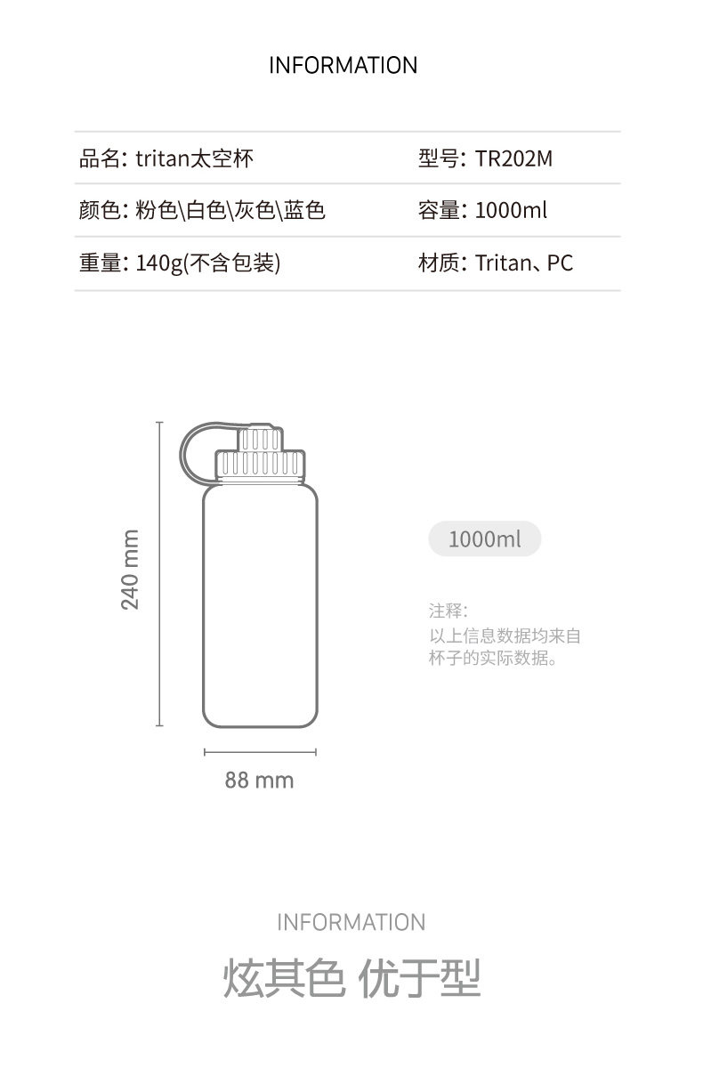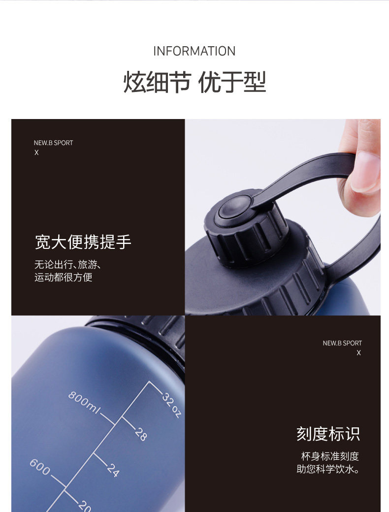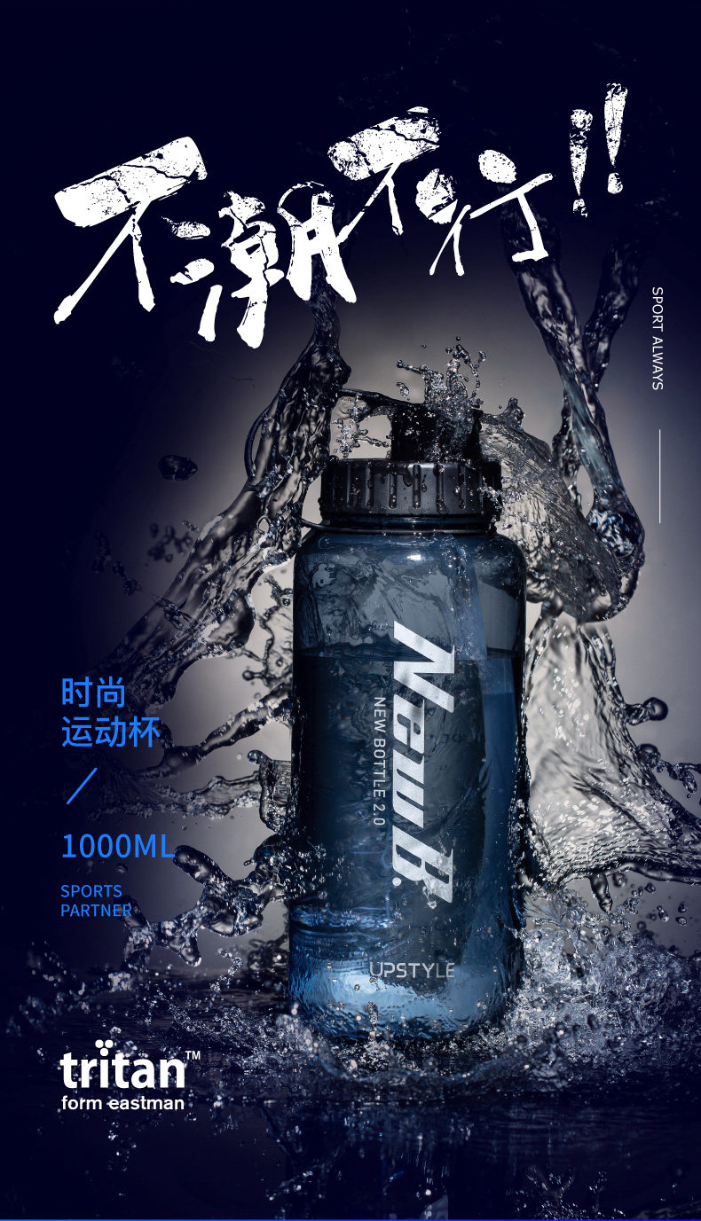 Портативный вместительный и большой пластиковый чайник для путешествий для спортзала, материал, 1000 мл