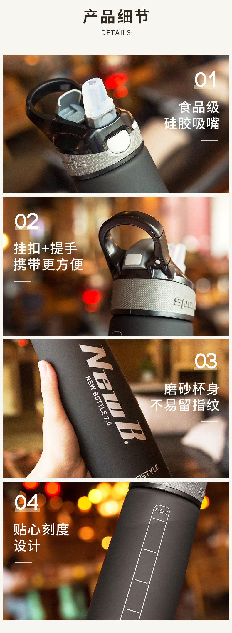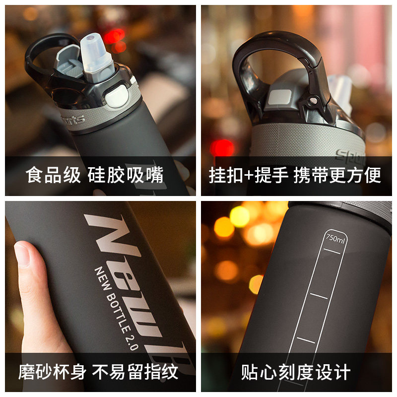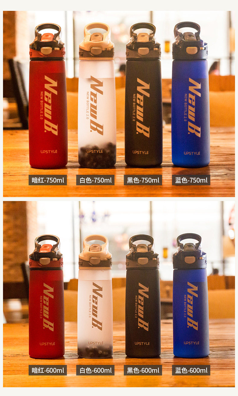 Вместительный и большой портативный чайник для путешествий для спортзала для воды со стаканом, матовый пластиковый стакан