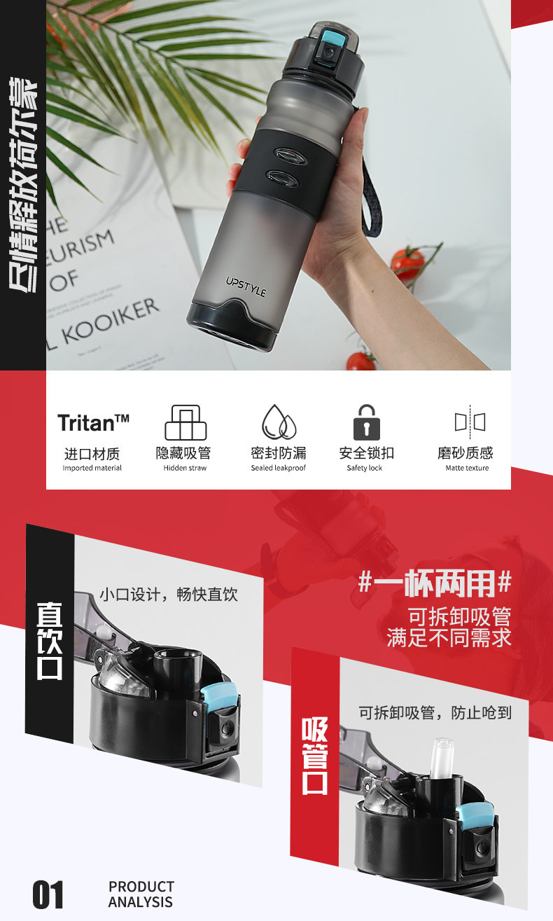 Пластиковый стакан со стаканом подходит для мужчин и женщин, портативная милая матовая спортивная бутылка
