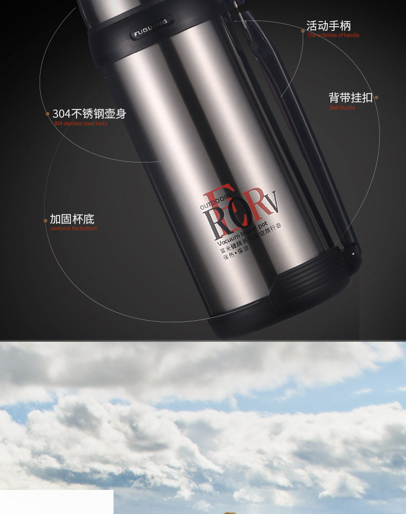 Термос, портативный вместительный и большой чайник из нержавеющей стали для домашнего использования для путешествий