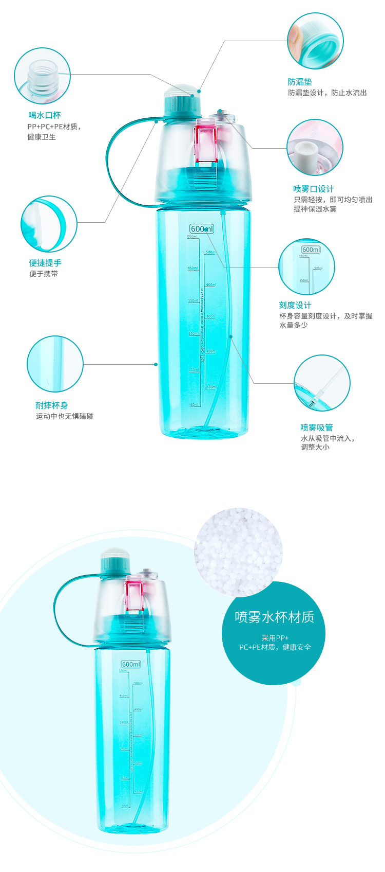 Японский детский портативный чайник, пластиковый спрей для спортзала