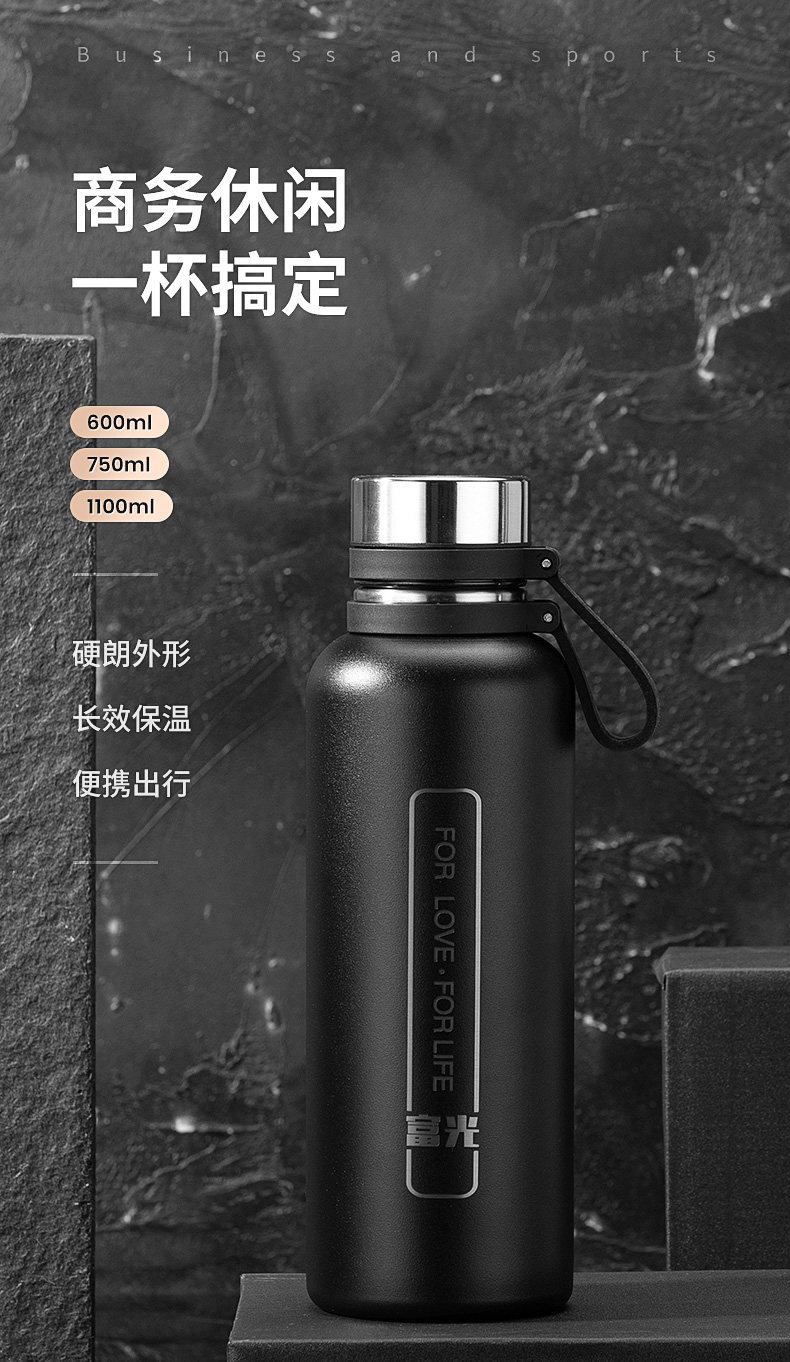 富光 Вместительный и большой стакан, портативная чайная чашка подходит для мужчин и женщин, дорожная спортивная бутылка из нержавеющей стали, 1000 мл