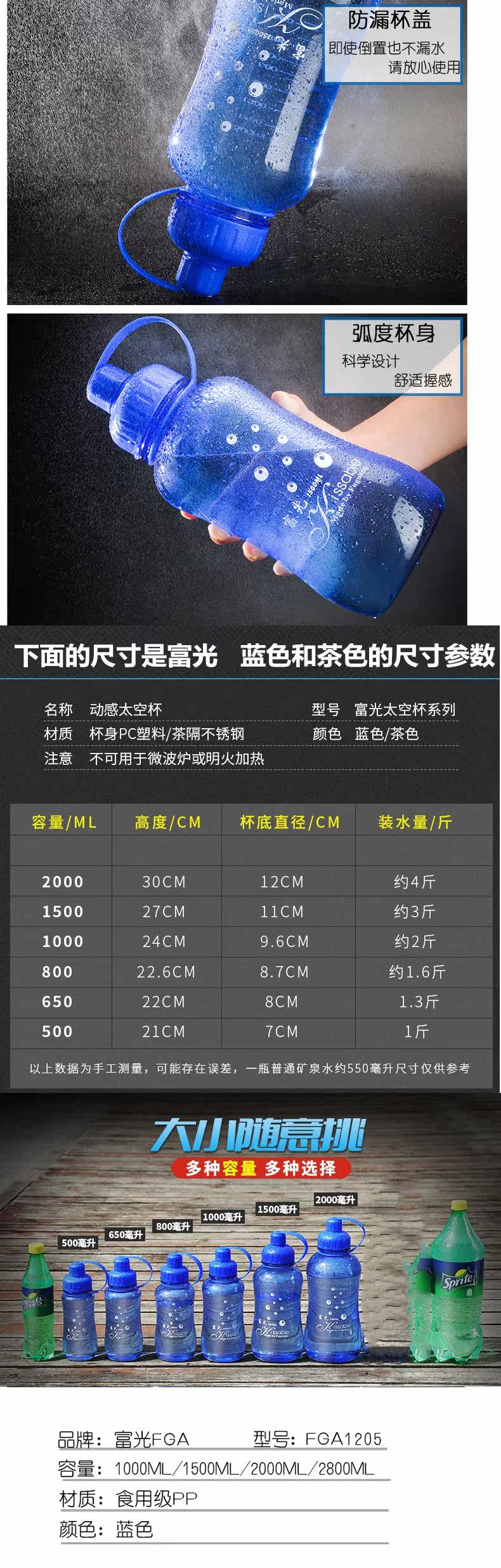 Пластиковая вместительная и большая чайная чашка, космическая дорожная портативная переносная спортивная бутылка, увеличенная толщина