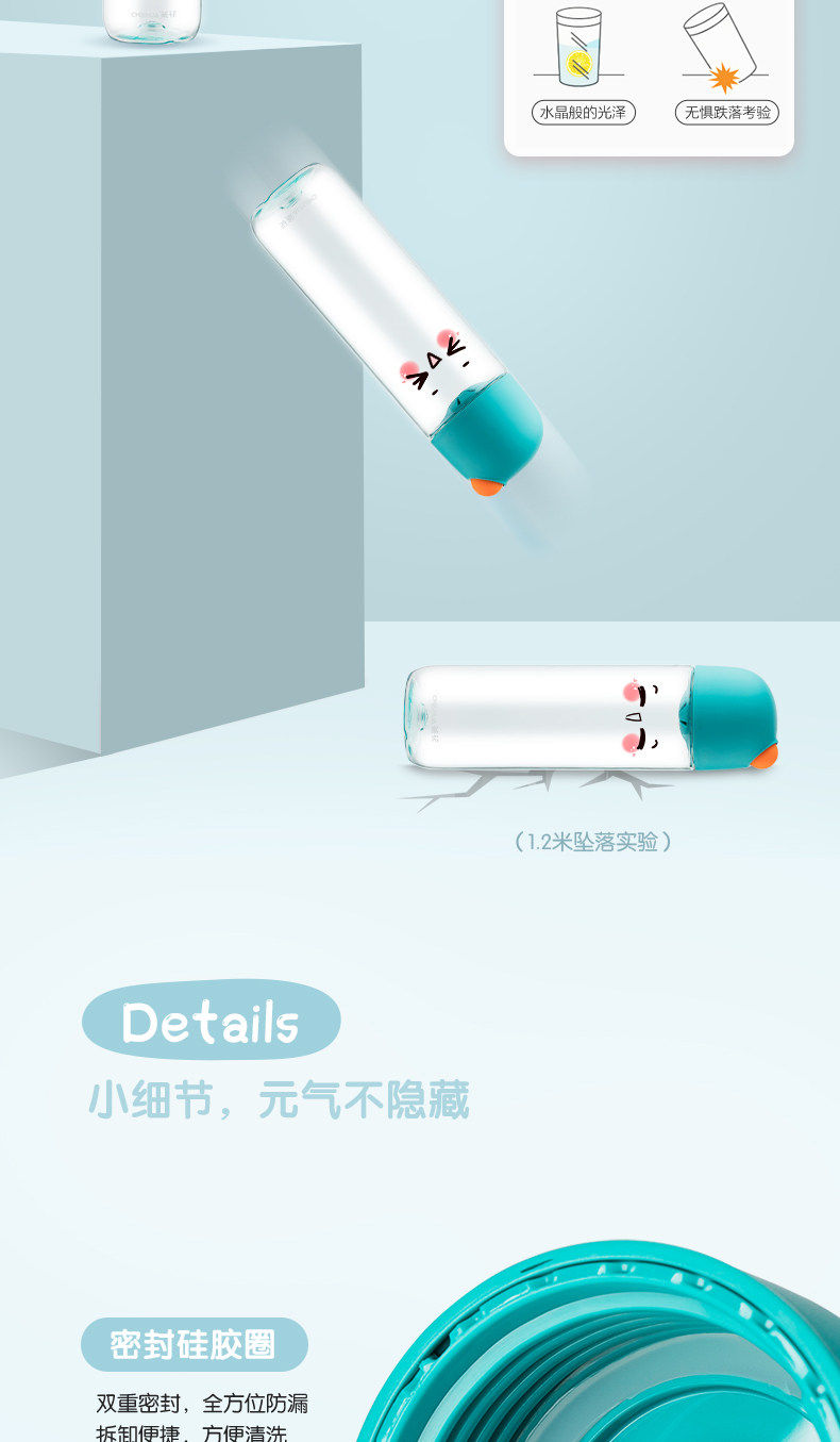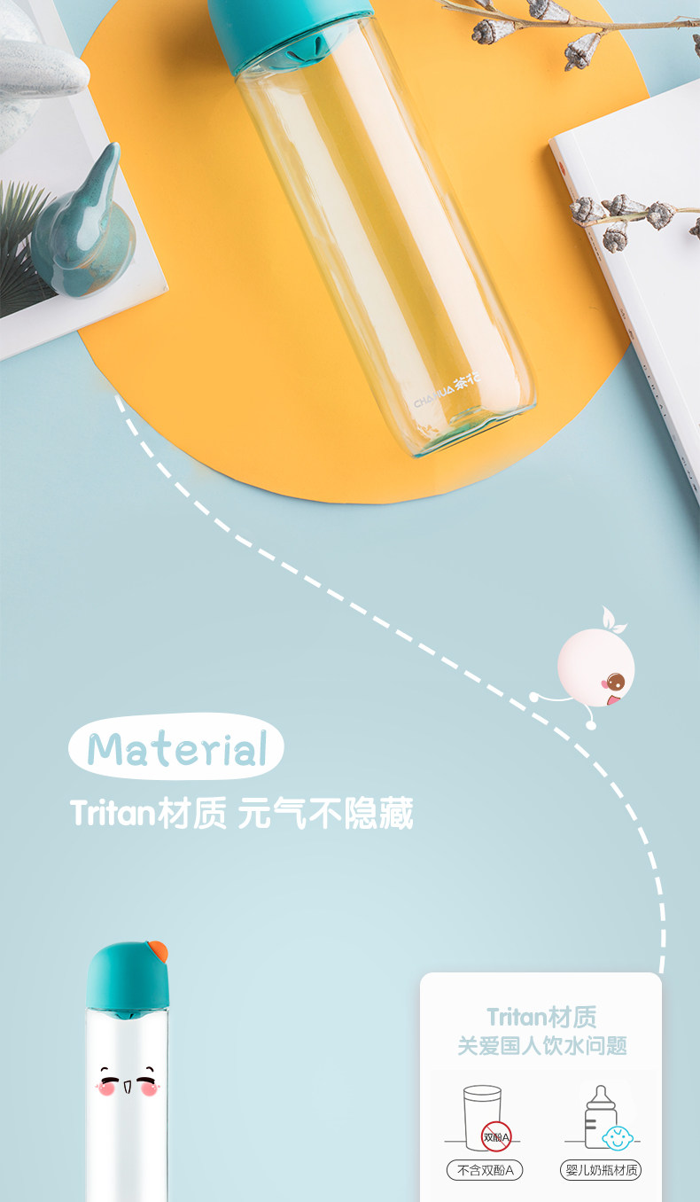 茶花 Портативная пластиковая свежая милая спортивная бутылка, простой и элегантный дизайн