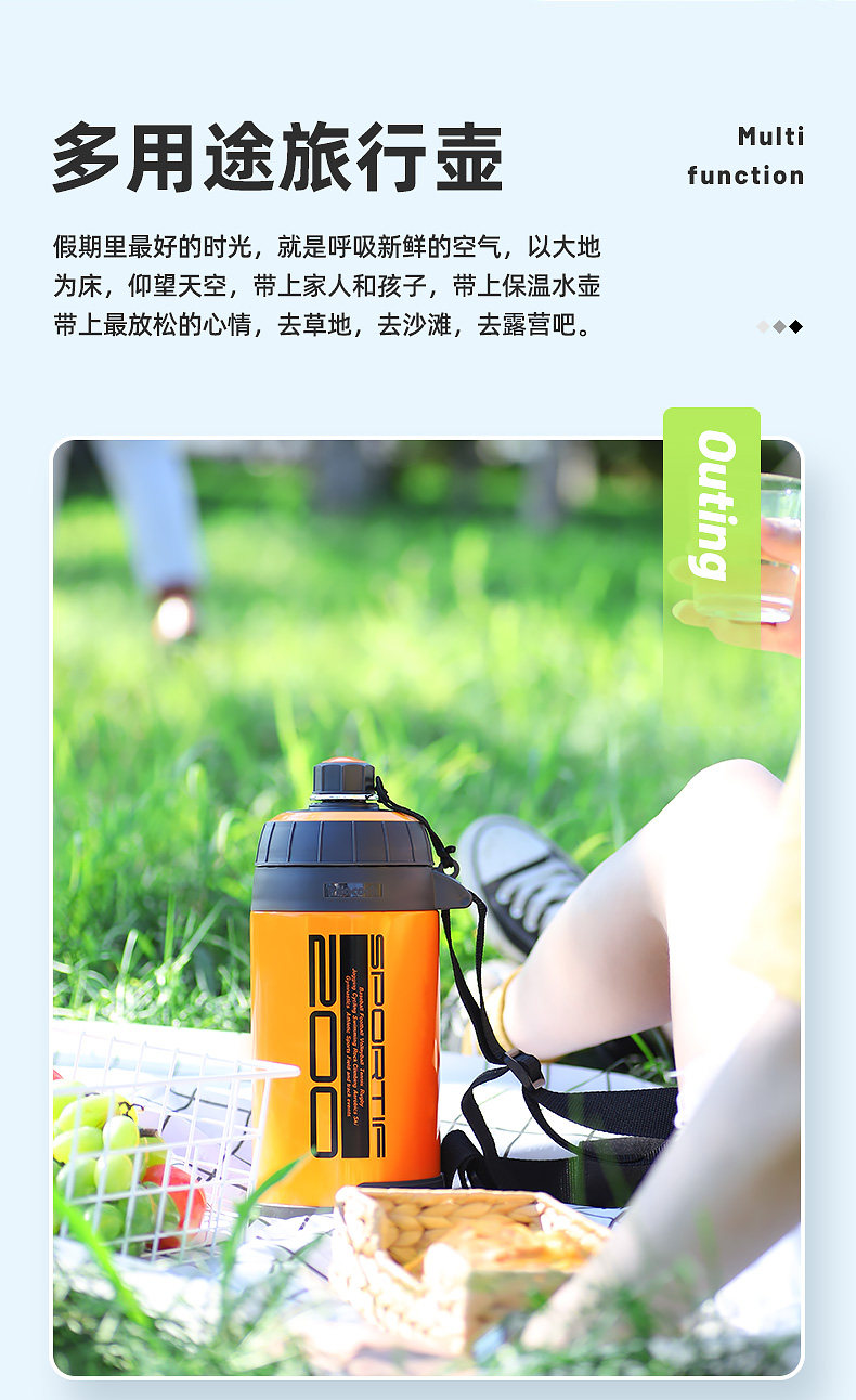 Японский вместительный и большой портативный чайник для выхода на улицу для спортзала из нержавеющей стали, нержавеющая сталь AISI 304