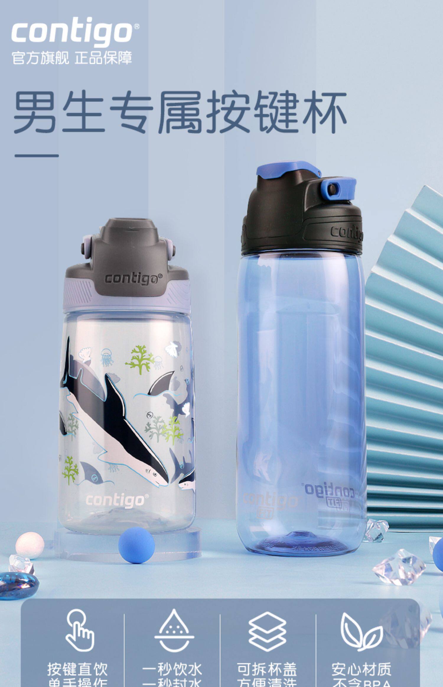 Американский контиго Кангдик прессает кубок водяного чаша Детский летний мальчик Прямой Кубок Анти -Фолд для школы для школы