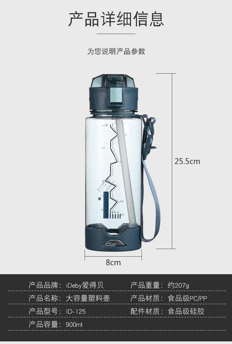 Вместительная и большая портативная дорожная пластиковая спортивная бутылка со стаканом подходит для мужчин и женщин, стакан, защита при падении